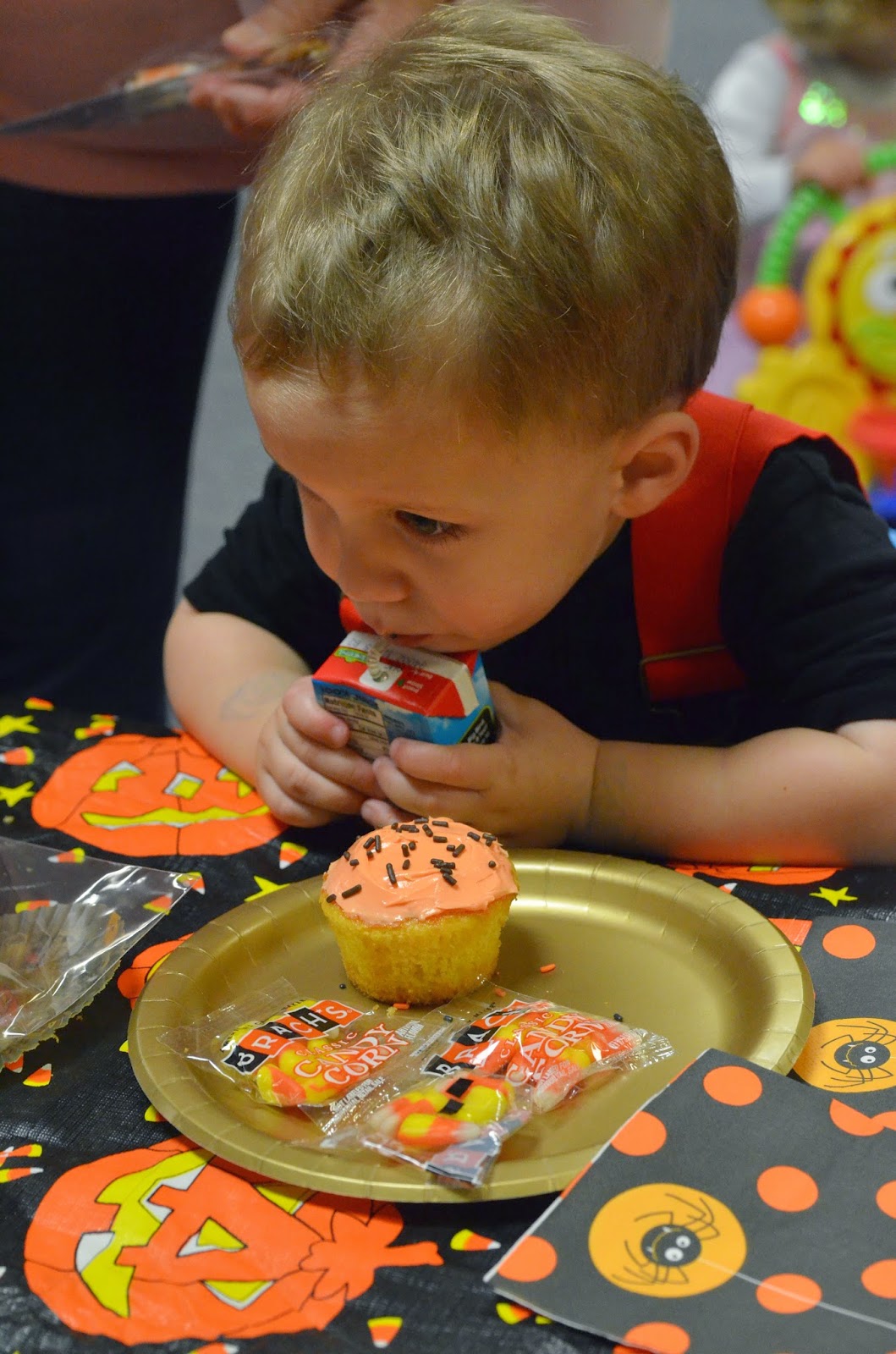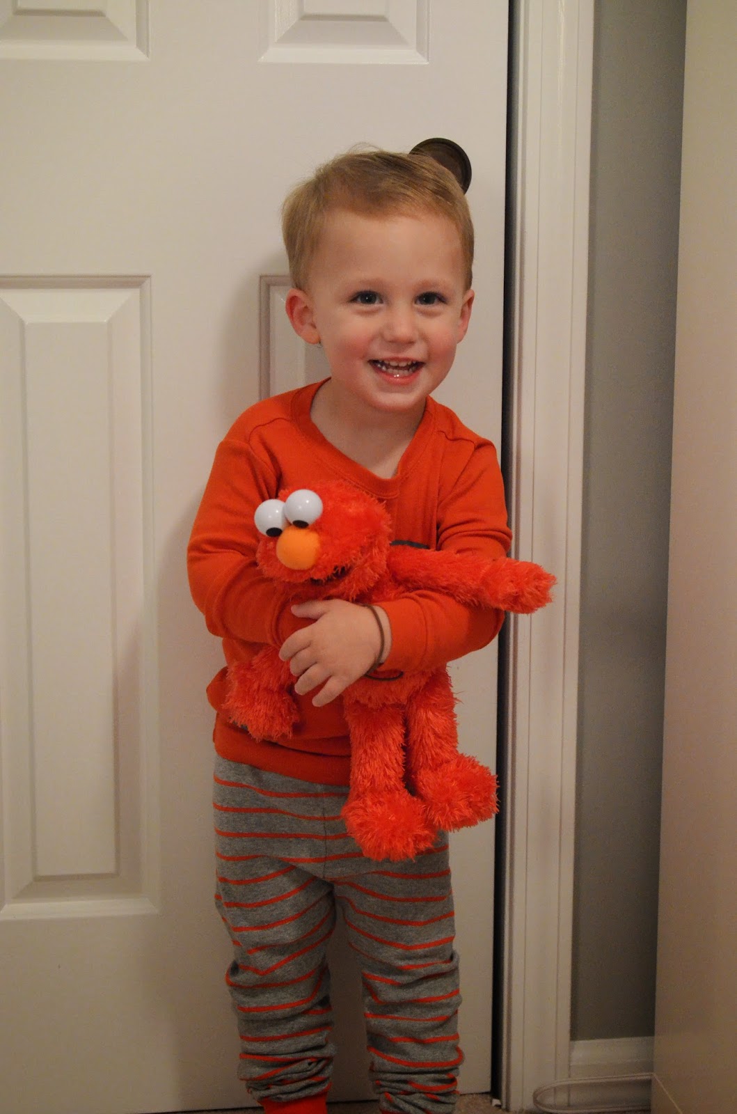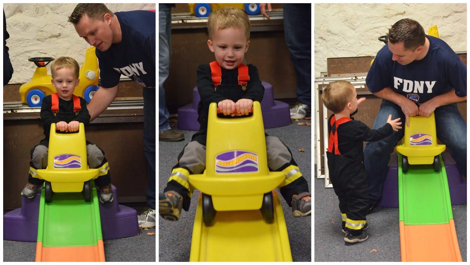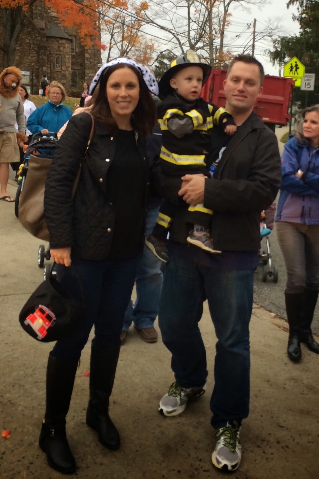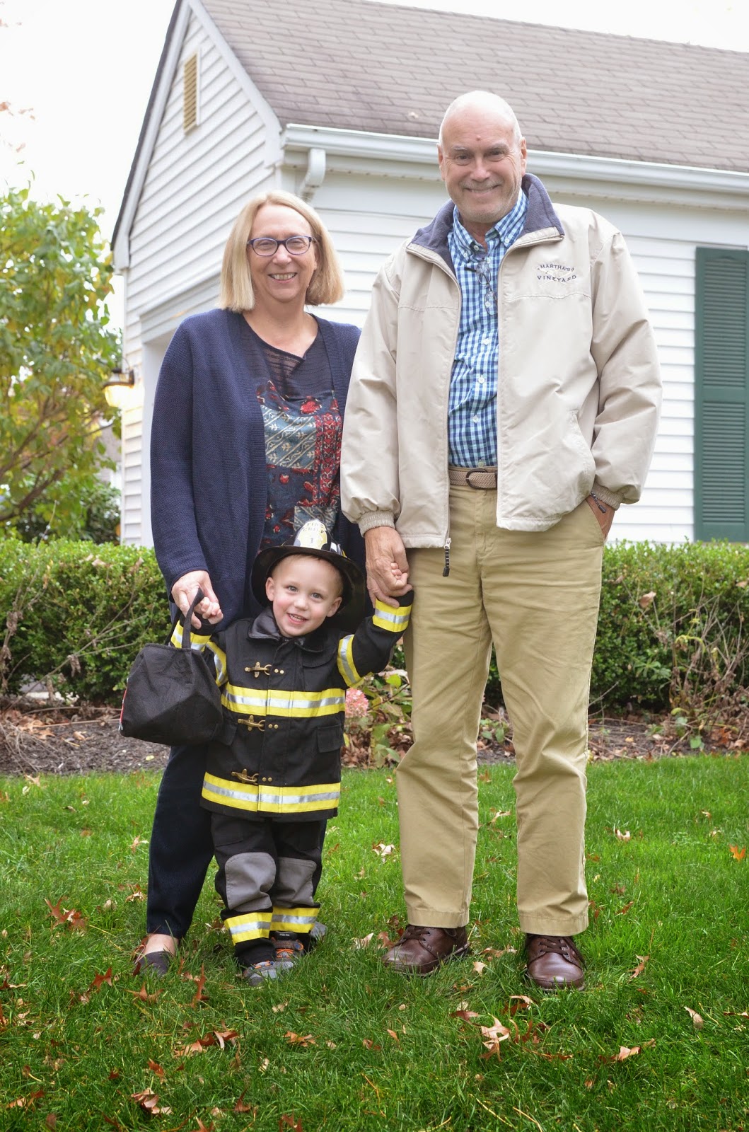 Who doesn't love a comparison shot... here's Noah last year dressed up as a pumpkin and this year dressed up as a firefighter! Last year he wasn't walking, let alone standing, and this year he's running around with an axe ;)