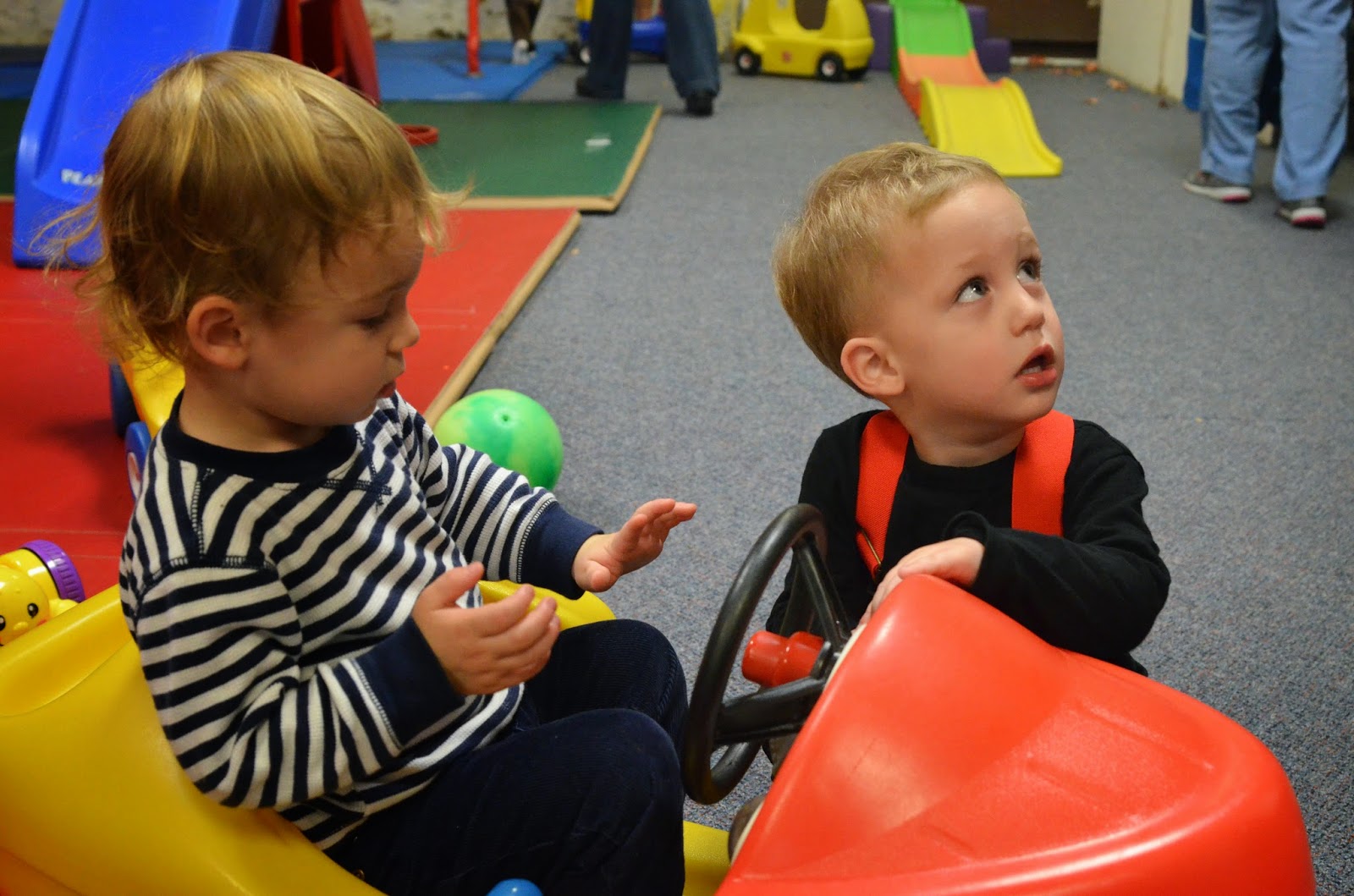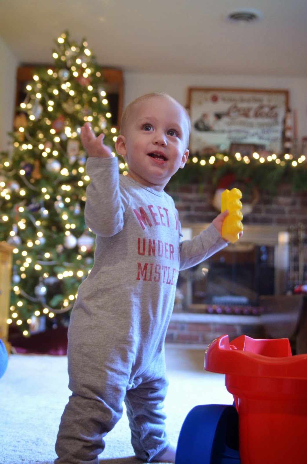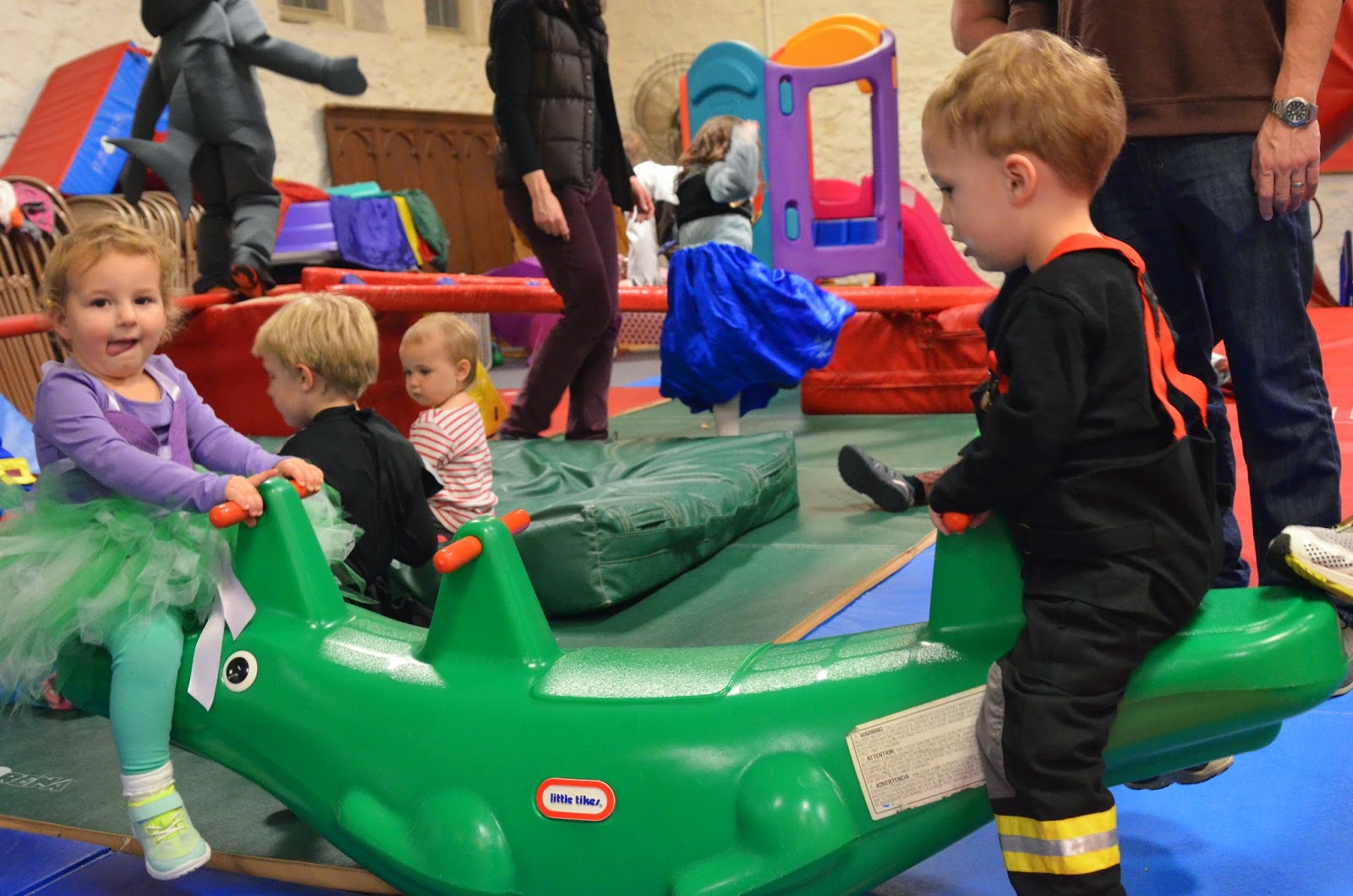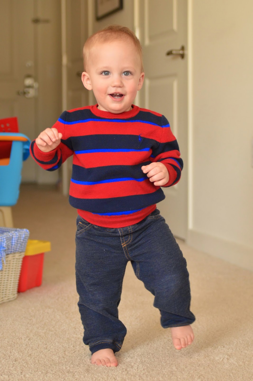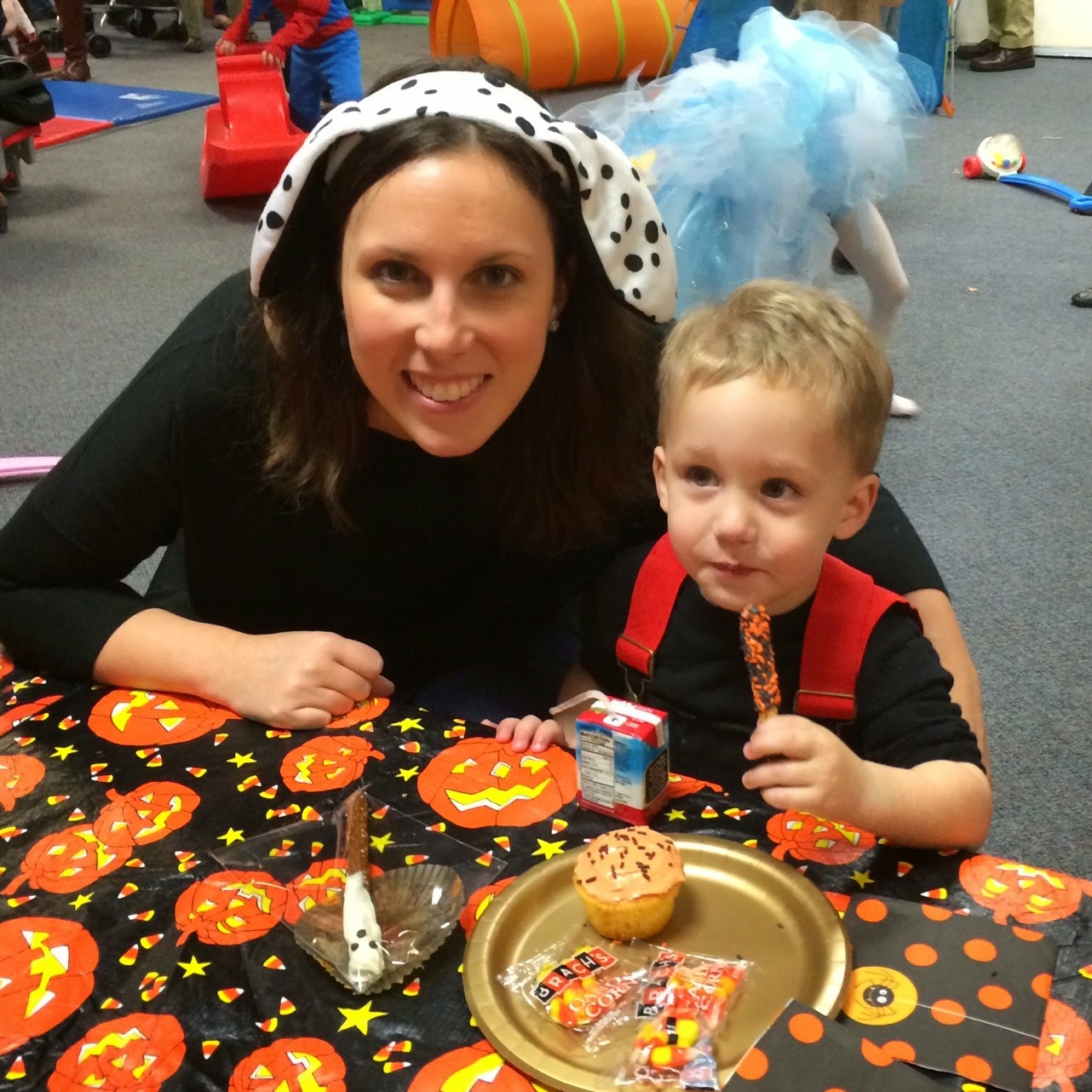Who doesn't love a comparison shot... here's Noah last year dressed up as a pumpkin and this year dressed up as a firefighter! Last year he wasn't walking, let alone standing, and this year he's running around with an axe ;)