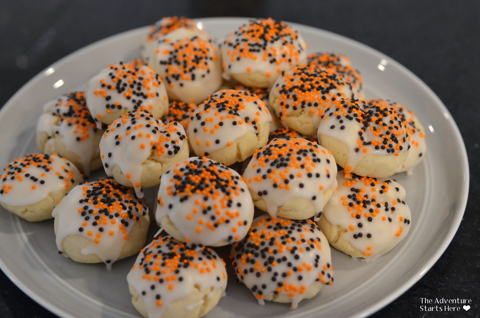 Noah helped me make some Halloween inspired cookies this week. While they are my usual Angeletti Recipe, I made them "Halloweeny" by adding orange and black sprinkles :)