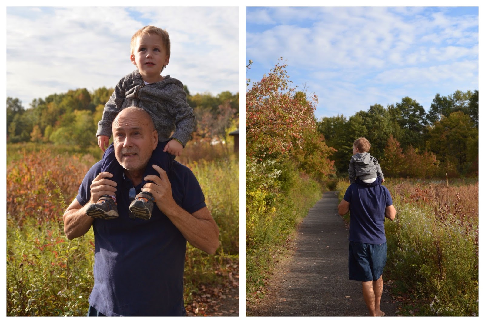 2. How fun! What a beautiful walk. I LOVE the changing colors of the leaves during the fall. If only we got that here and I didn't just have to look at pictures and daydream. Noah is too cute with your mom and dad! You can tell how much he loves them and loves being with them. He just looks so happy up there on grandpa's shoulders!