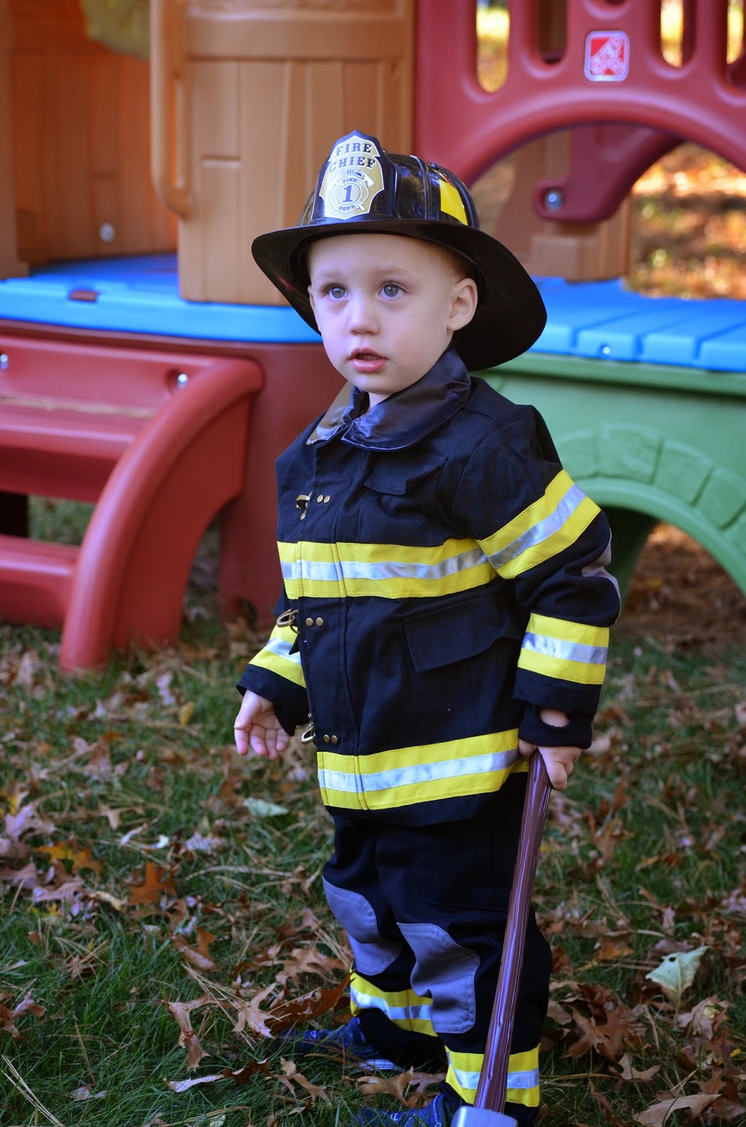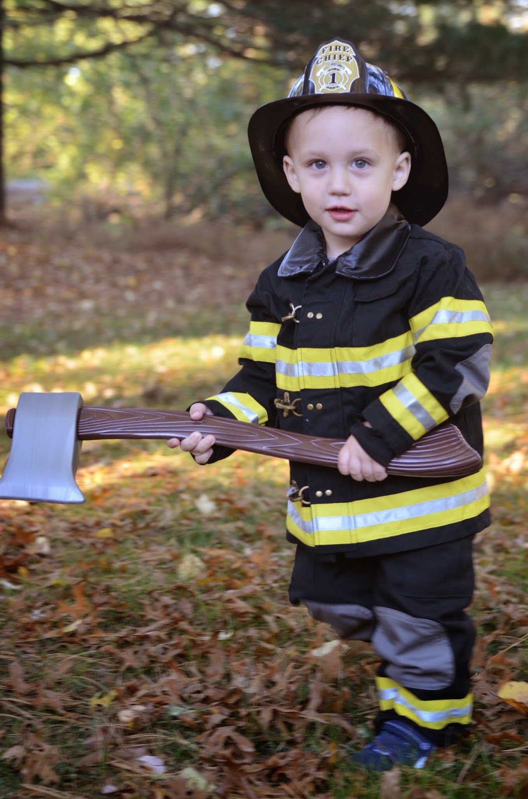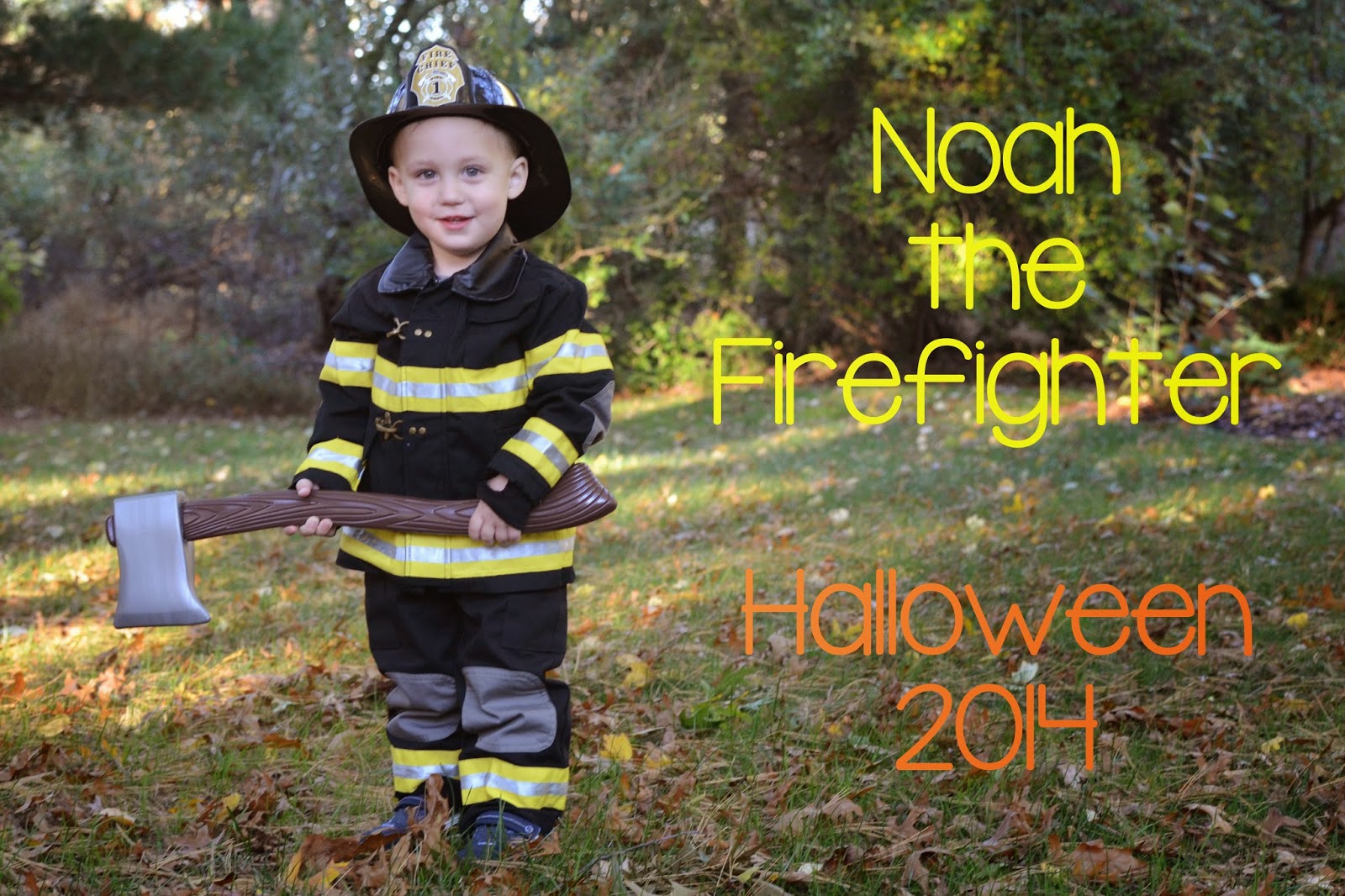 Noah is dressing up as a firefighter this year.  I have a feeling this is the last year I will get away with choosing his costume for him ;)   Last year Noah was the cutest pumpkin!  We have a few Halloween events to go to next week in addition to trick or treating.  This will be the first year we go door to door and I expect we will only go to a few.  We decided to do a practice run over the weekend and Noah seems to really like the costume.  It's warm and feels almost like a normal outfit, so it's easy to move around in.  He also likes playing with the rubber axe :). We are now super excited for Halloween!
