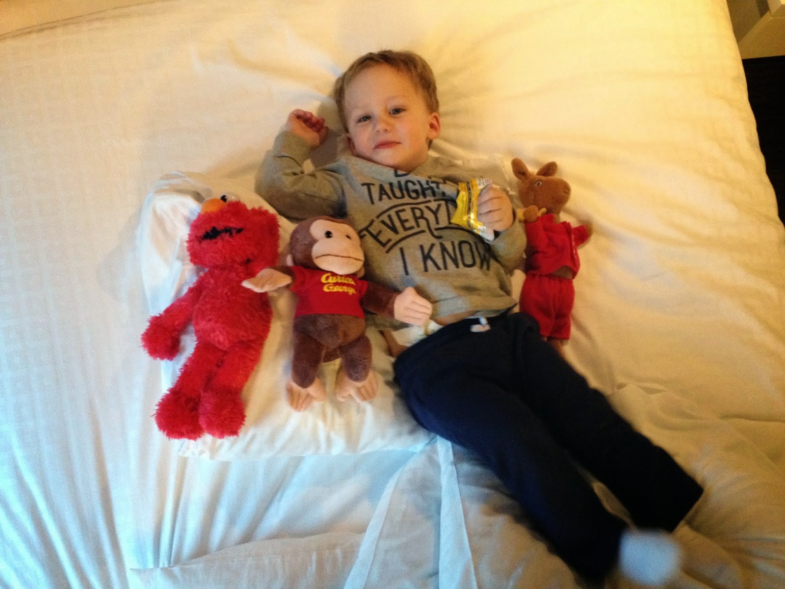 Whew... we are back from our trip to Toronto and back to our normal schedule. While I enjoy traveling, I always appreciate coming back home! Last Thursday (Thanksgiving), we flew from Newark to Toronto. I have to say that it's pretty great flying on Thanksgiving morning. The airport wasn't busy at all and had no trouble with security. Noah did amazing on the plane and seemed to love having his own seat. We were prepared with books, stickers, and of course the iPad (with headphones) to keep him entertained. He also liked switching from sitting with me, to Chris, to my parents. It definitely helps to have more hands when flying with a toddler!