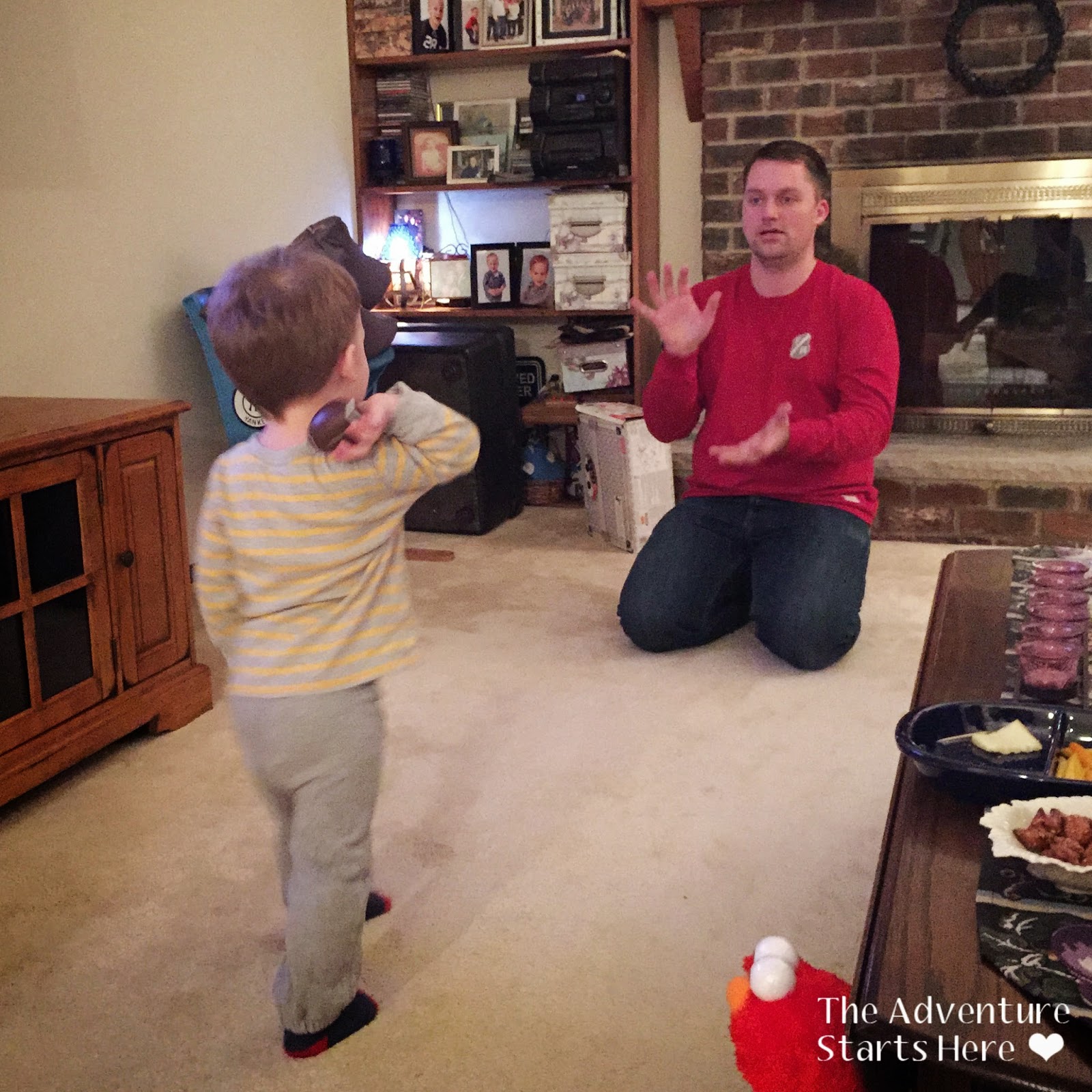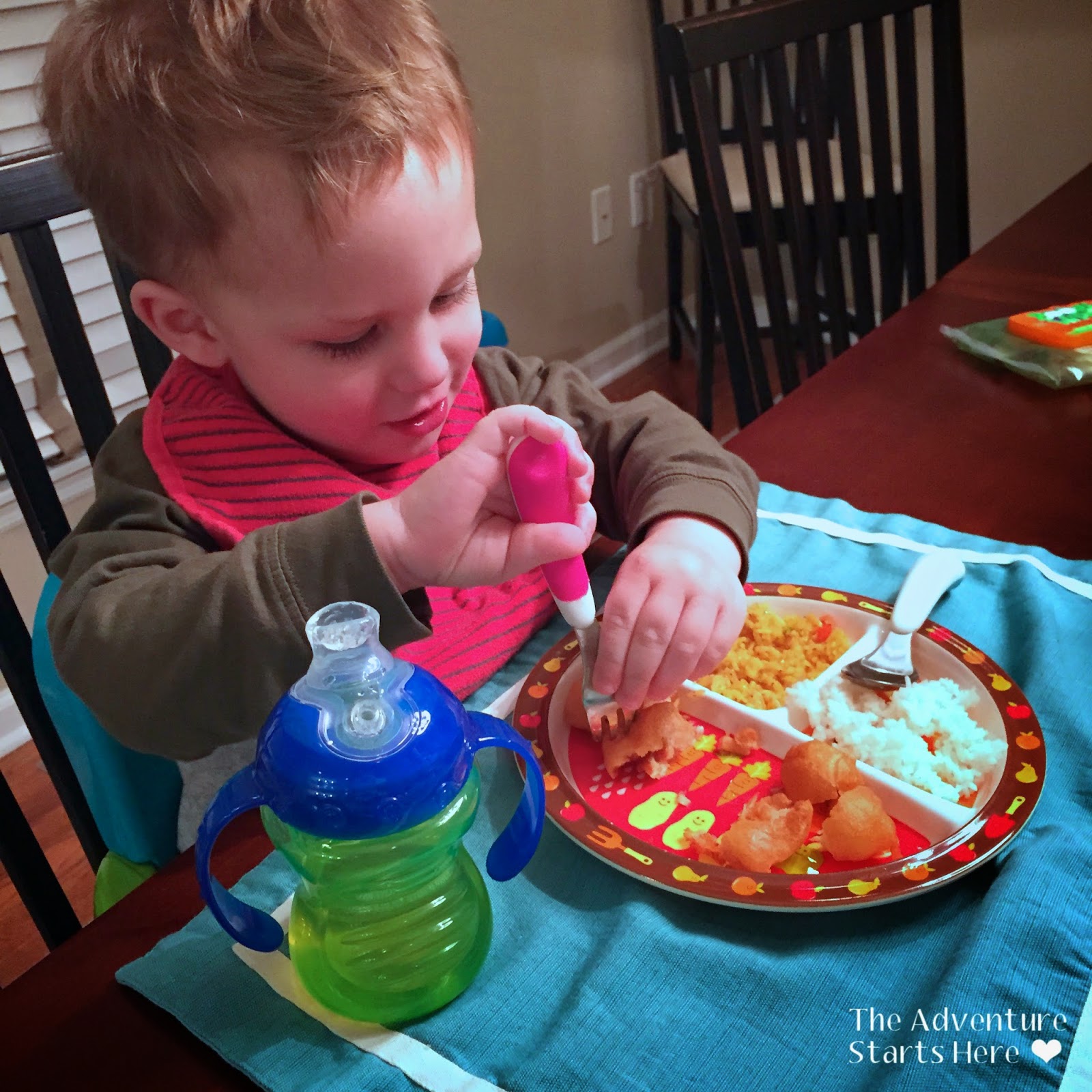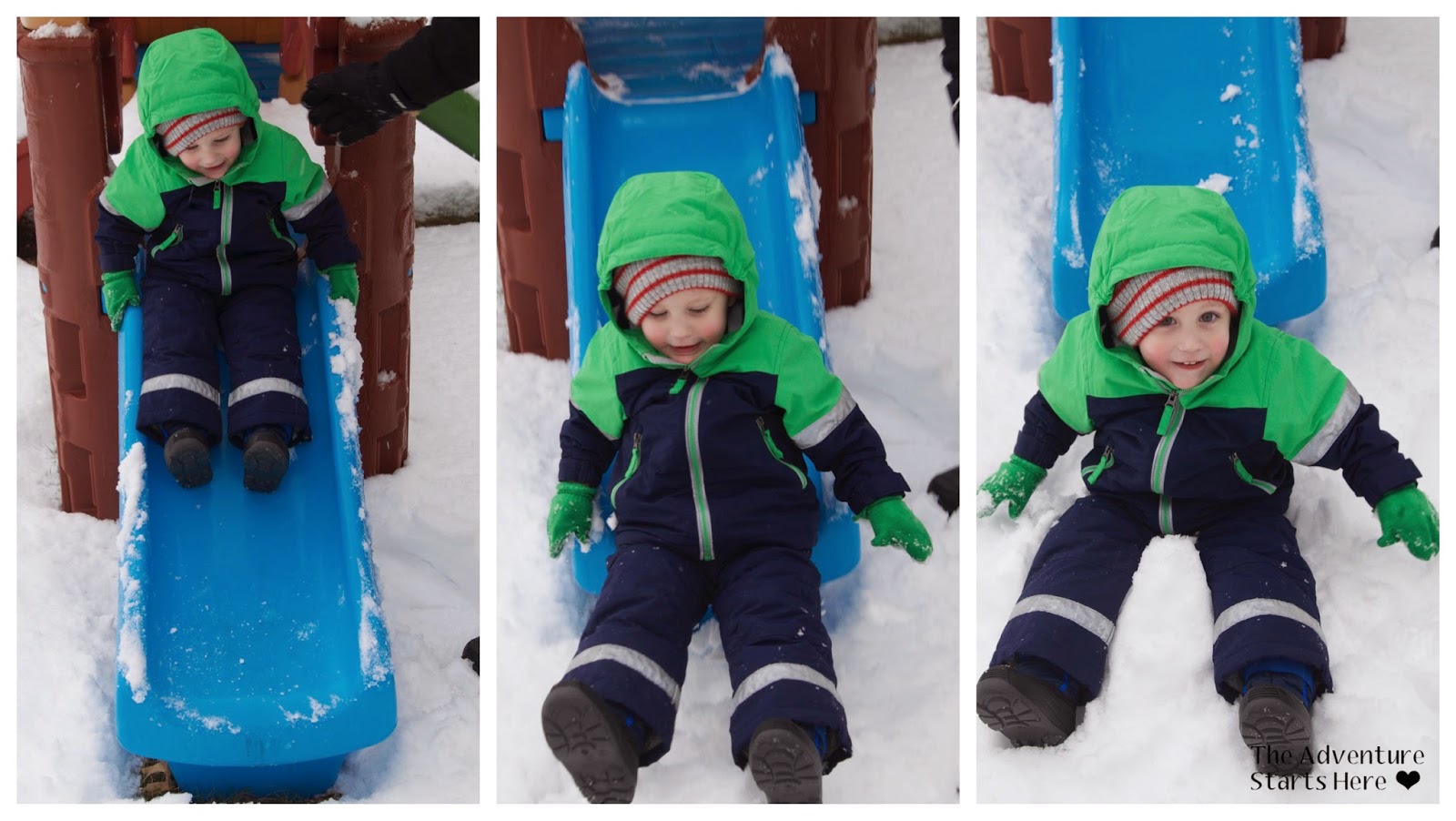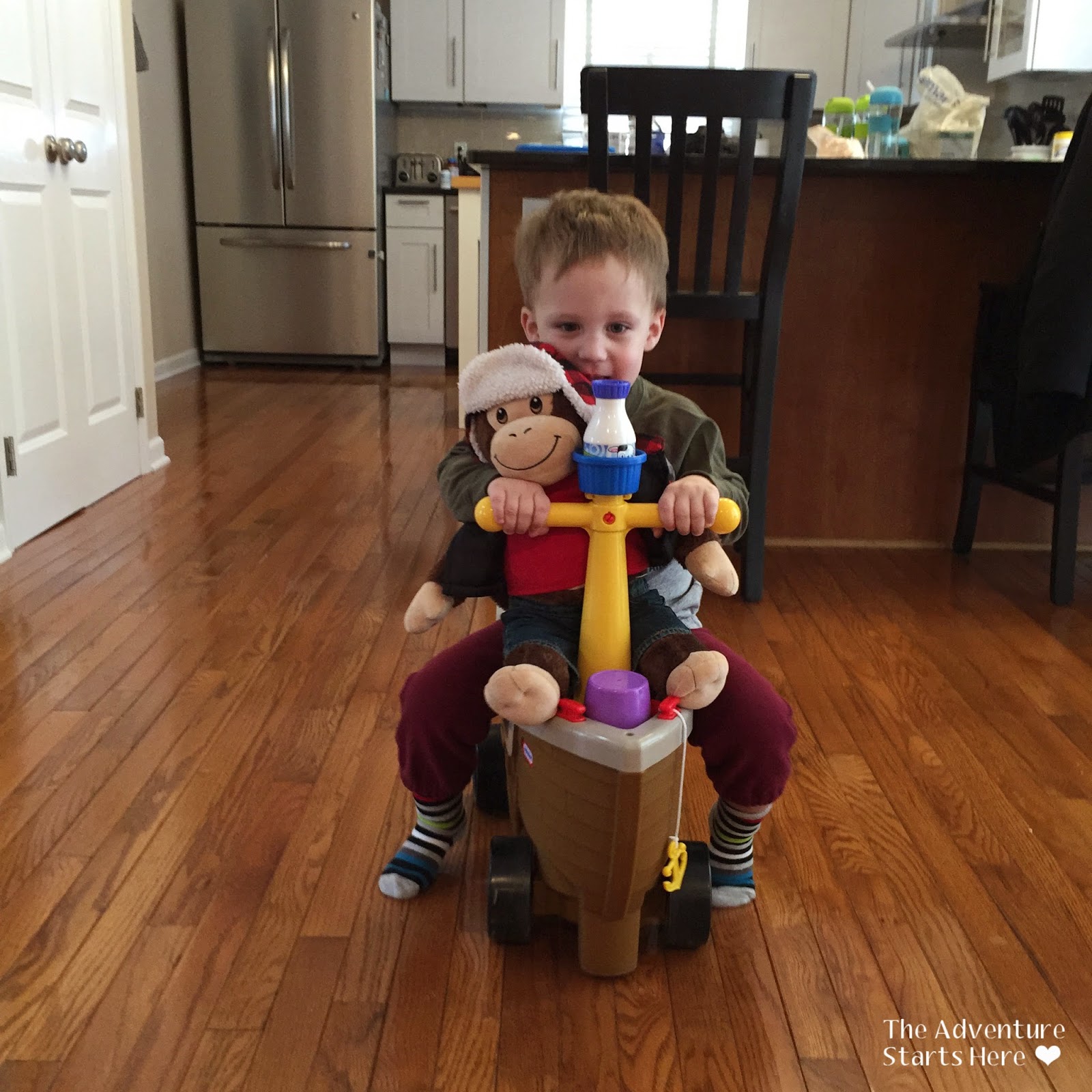 While we technically could have gone out on Tuesday (since the storm really wasn't bad), we decided to take the snow day and do some baking. Noah loves to help me cook and immediately grabs his step stool whenever he sees me start to prepare something. Yesterday, I shared that we made our favorite muffins. Here are some more pictures of Noah helping me. He even grabbed his play cutting board, knife, and zucchini to work along with me :)