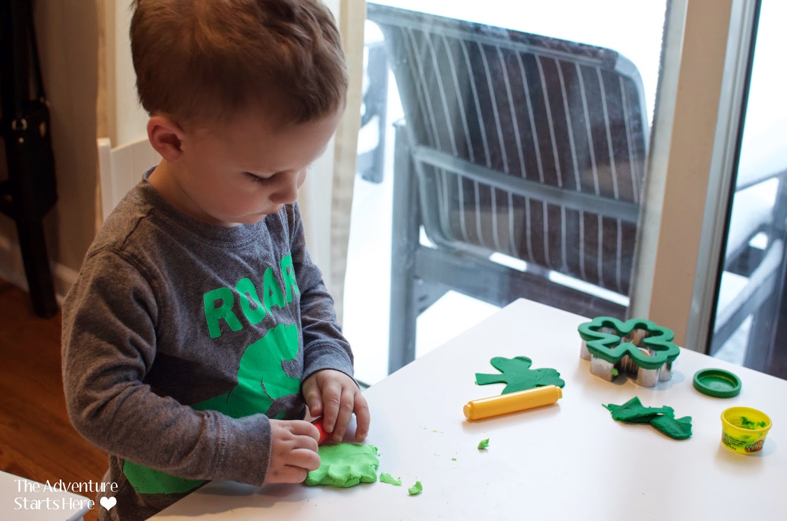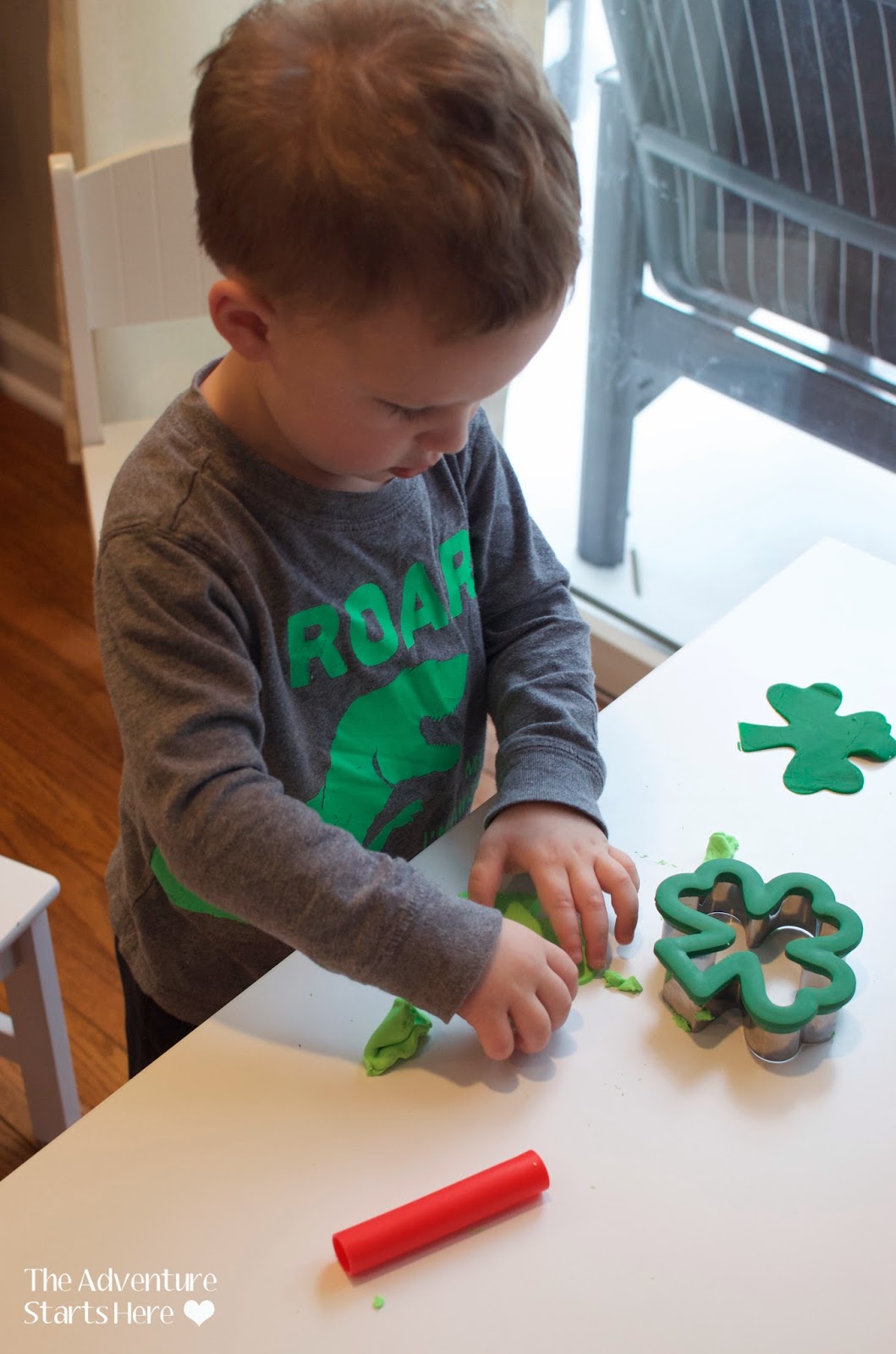 I also gave Noah some green play doh and a shamrock cookie cutter and let him have some fun :)  Later this week we plan on baking and decorating shamrock sugar cookies.