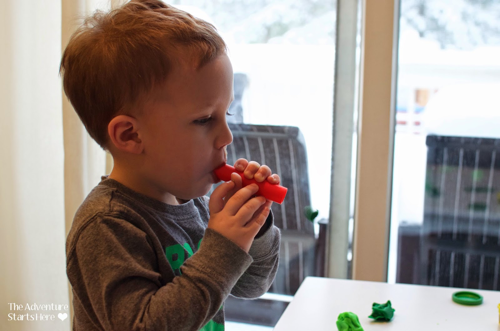 ^^^ Chris taught him how to blow little circles of play-doh out of the "rolling pin".