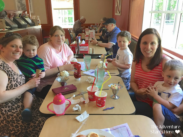 11:45... Becky & I head over with the boys to meet our friend Nesa, and her two kids at Friendly's. We met each other through the MOMS Club in my old town and since then we've all moved. While Nesa & I moved to the same town, Becky lives 40 minutes away now so we don't see each other as often as I'd like. The kids did great and we made sure to get them all ice cream and a balloon!