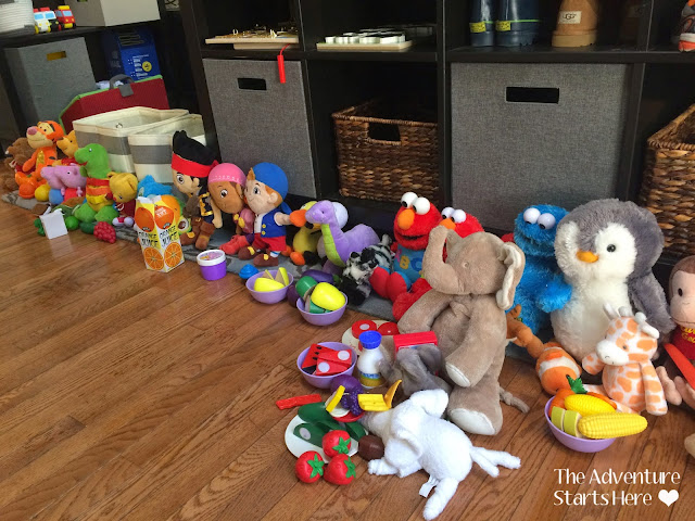 7 am... Noah watches his iPad from my bed so I can quickly get ready. We then head downstairs to play. Today it was all about having a picnic with all his stuffed friends! I convince him to stop playing for a little while to eat some cereal and then we get dressed for the day.