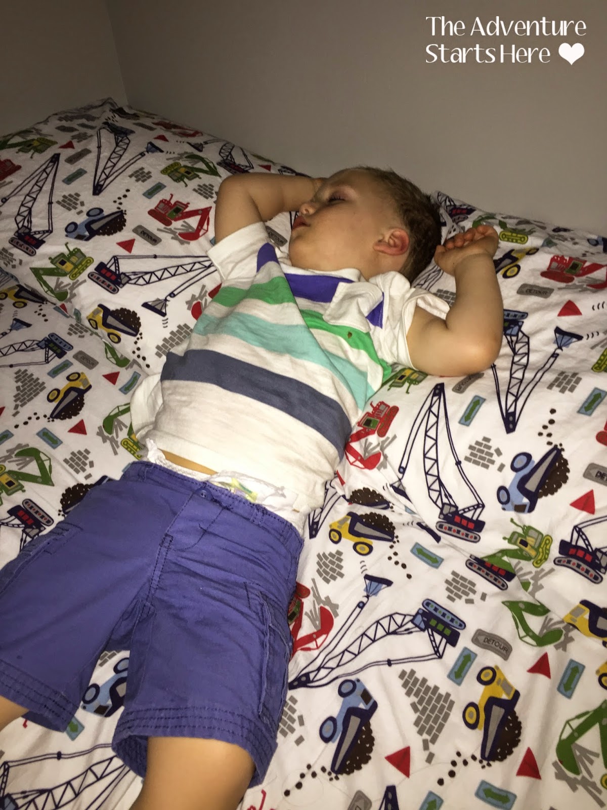 1:25 pm... Noah fell asleep on the ride home as I suspected. Whenever we are driving around nap time, I make sure he has a clean diaper on and take off his socks and shoes. It makes for a much easier transfer for when we get home.