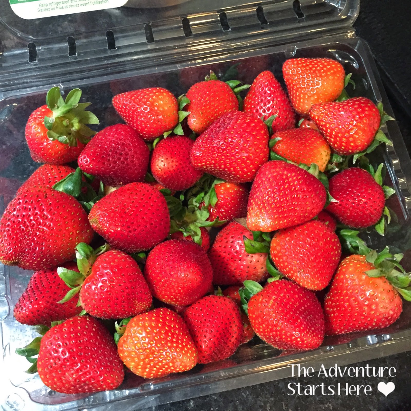 5:45... We are back home and the groceries are all put away. I start making dinner... chicken quesadillas. Noah has no interest in them and instead opts for a random dinner of cheese & crackers, applesauce, and a clementine. I decide that I can't wait any longer to eat some of the delicious strawberries I just bought... and they were on sale!