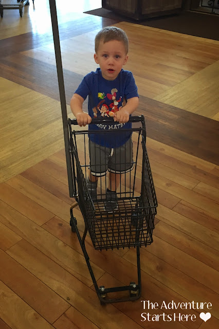 3:45... Noah wakes up and we cuddle and hang out in bed for a while. Finally at 4:15 I tell him we need to get up and head over to the grocery store. Noah likes it when we go to the Kings with the kid size shopping carts. Usually I only do a small shop when we go there, but today I had a long list! I ended up using his cart and a basket, while I really could have used a full sized cart... it was definitely not fun for me! Noah was super good and well behaved, it was just hard for me to manage it all.