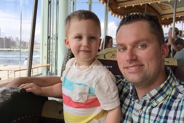 We then made our way over to Jane's Carousel. I honestly expected it to be a bigger carousel. It is a beautiful old carousel and the view of the city is pretty amazing. Chris took Noah on and he picked his usual bench seat (he's a little nervous of the horses going up and down I guess). Chris and Noah would "hide from me" and then surprised me when they came around. It was really cute to watch the two of them have so much fun!