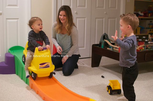 ^^^ Quinn loved playing with Noah's larger toys once we had a house with more space!
