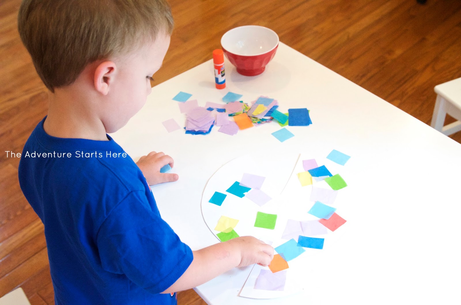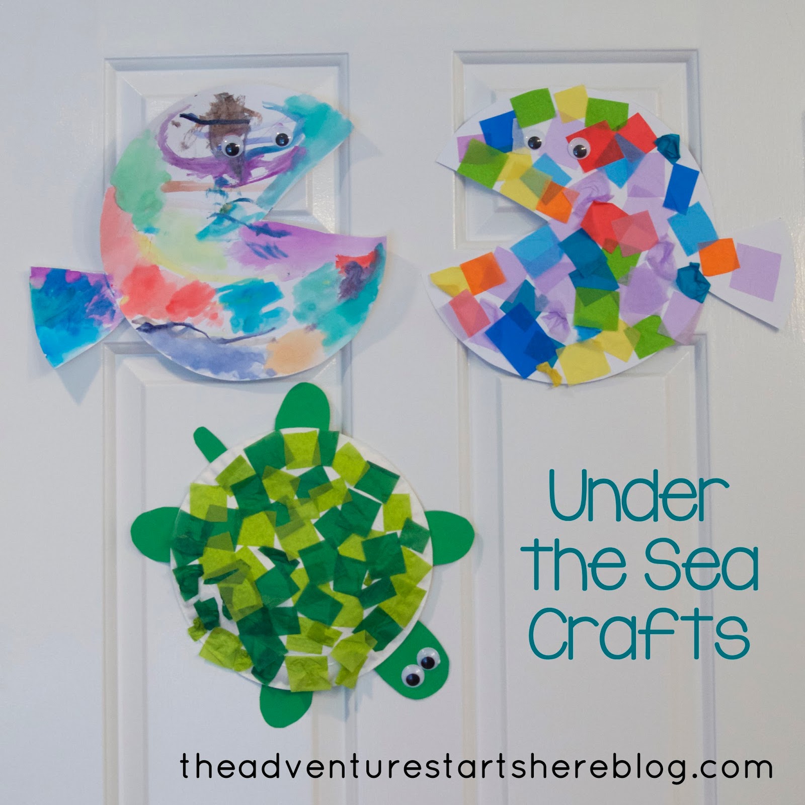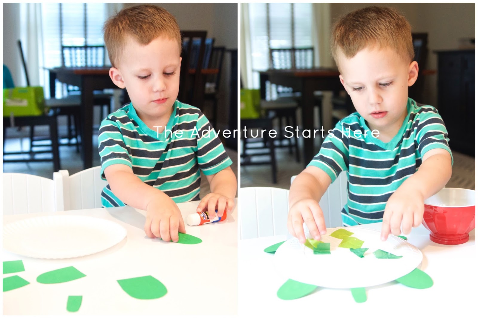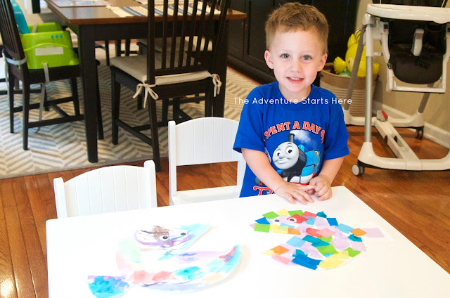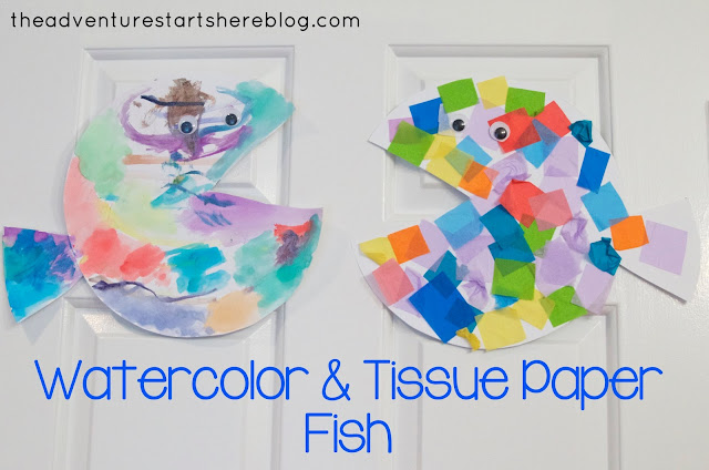 Noah loved doing both... he is a huge fan of painting and using a glue stick! And while I would have only put one eye on each (since it's a side profile), he wanted 2 eyes for each fish... so that's what we did :)