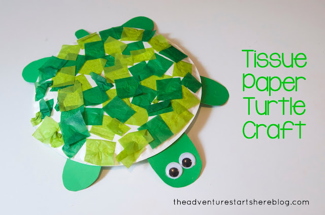 We also made a tissue paper turtle. Noah loves turtles and once again, any craft that involves a glue stick is fun in his book!