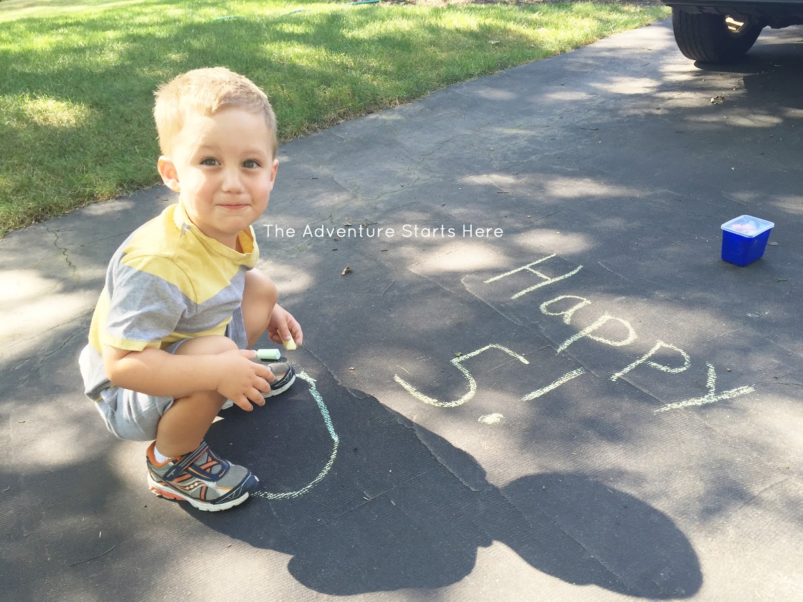 Noah wouldn't attempt saying "Happy Anniversary", so instead, we taught him to say "Happy 5"... it was super cute and he kept saying it all day long :) While I went to get my hair done, Chris took Noah outside to play with the chalk and texted me this super cute message!