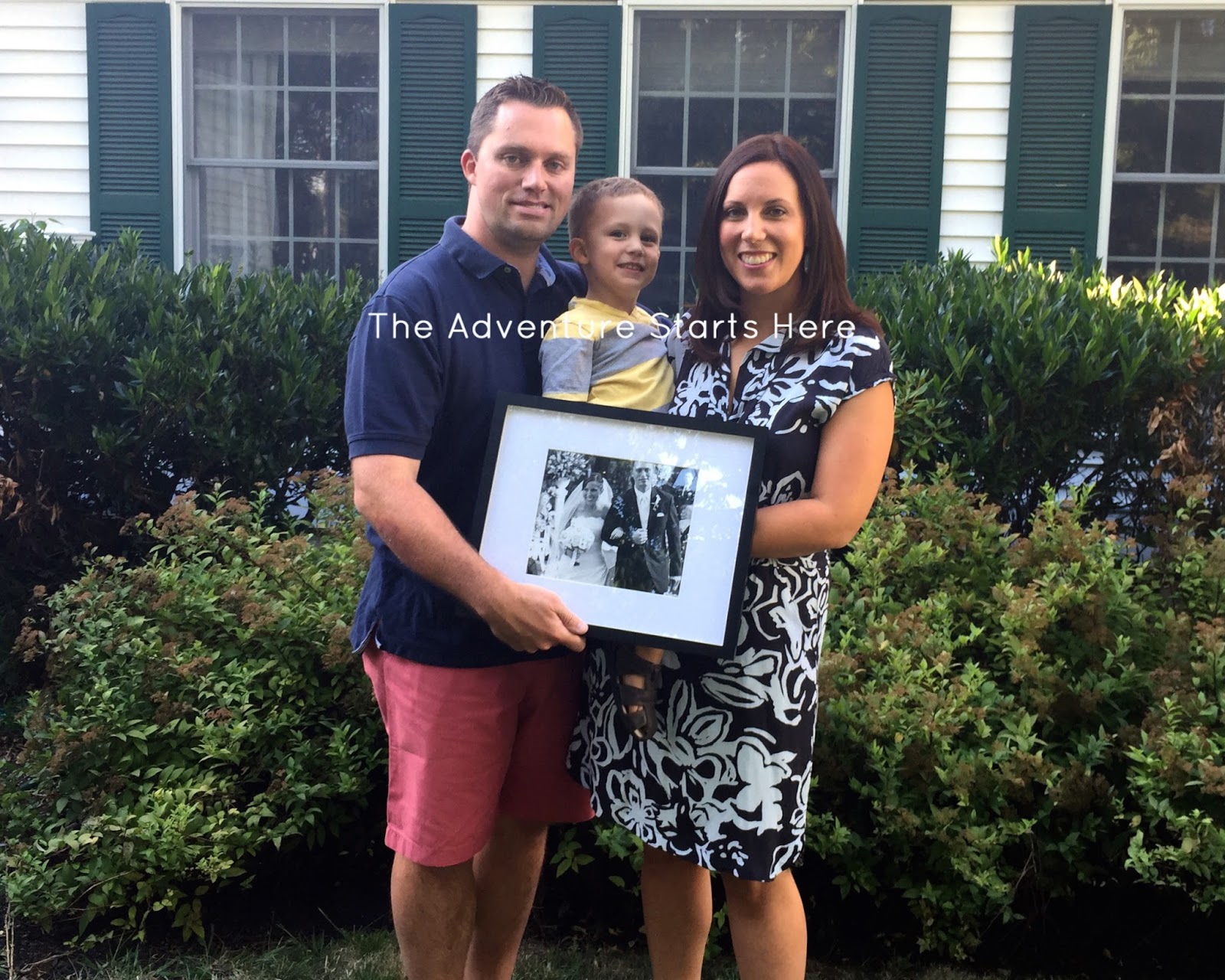 My mom came over to watch Noah so that we could go out to dinner. Since Noah won't go to bed without me, we try to go to an early-ish dinner and be home in time to put him to bed :) Before leaving, we made sure to get some family pictures. Chris had the idea to take a picture of us holding a framed wedding photo. On our 10th anniversary we will take a picture of us holding a framed photo of the picture below. We hope to do this every 5 years :) It was too funny when my mom commented that it reminded her of Modern Family, since that's where Chris got the idea and how he described what he wanted to do!