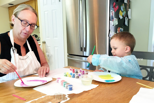 Since he was gone all afternoon and into the evening, Noah and I decided to go to my parents' house for dinner. I didn't have to worry about dinner and Noah got to play with Grandma & Papa. I even brought over the supplies for a craft I had wanted to do with Noah and my mom ended up doing it too! Stay tuned on Wednesday to see what they made :)