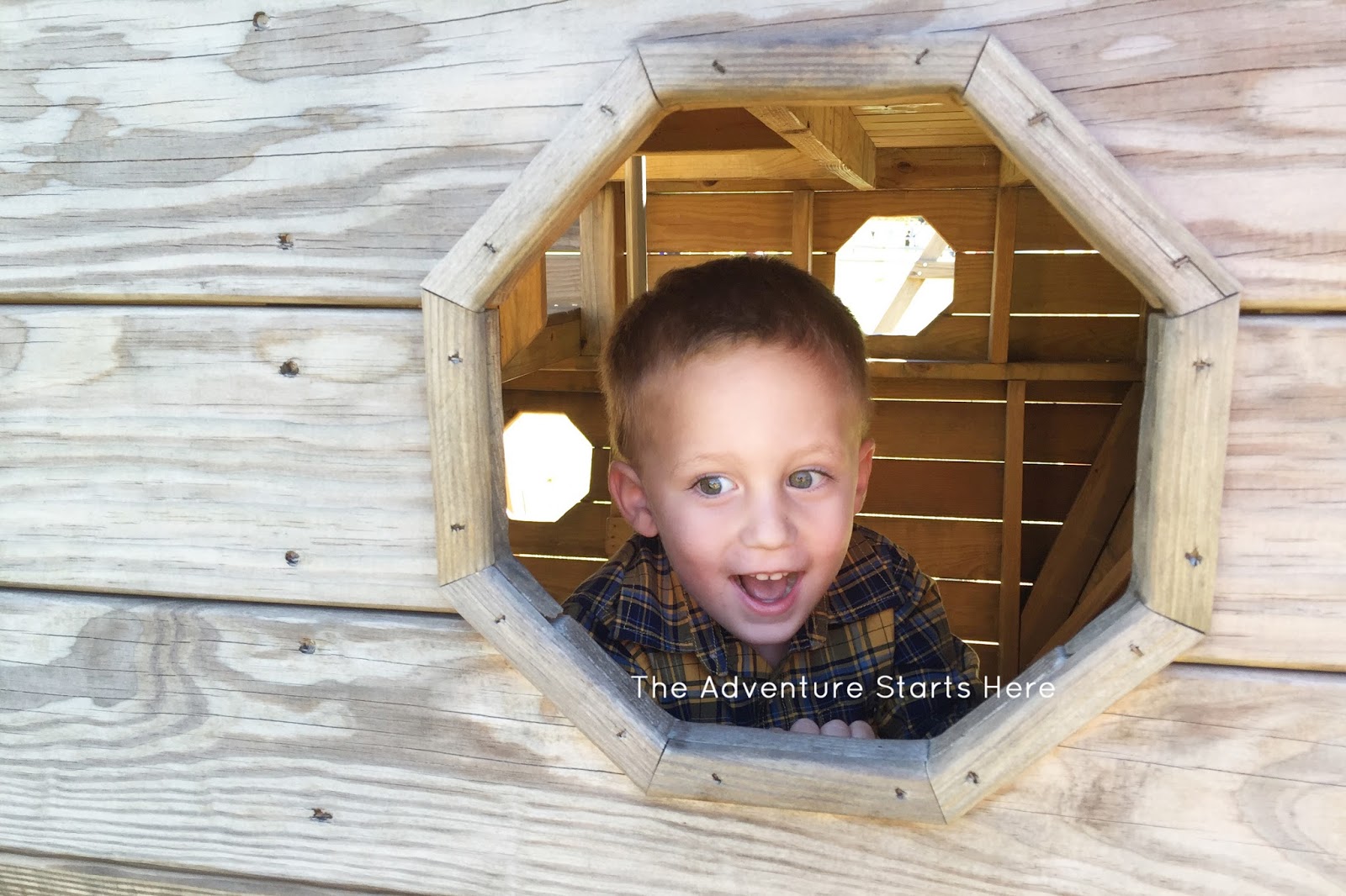 Everyone was such a good sport and went along with almost everything Noah requested. We all got on the back of this tractor play structure and posed behind the tractor cut out... it was too funny!