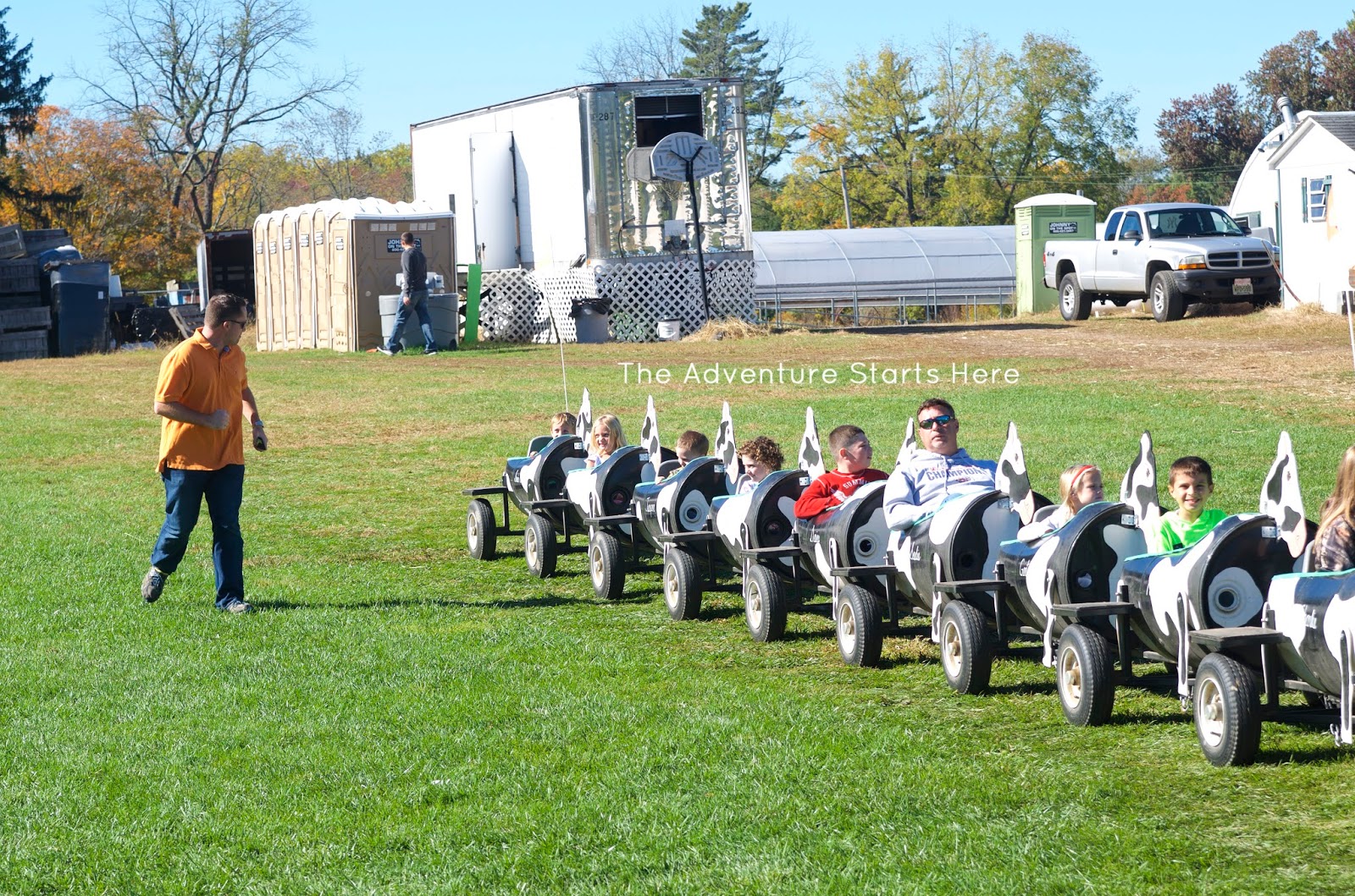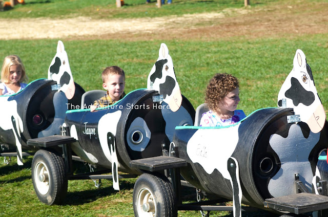 Once we got back to the main part of the farm, Noah went on the "cow train". It's crazy how he's now old enough and big enough to go on these things all by himself. The train went all around the farm and on it's way back, Chris ran to catch up to it and get some video. Chris said one of the little kids on the train thought it was hilarious that he was running with the train and wouldn't stop laughing :)