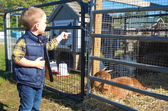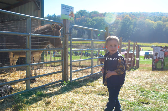 This farm had some animals, but it wasn't a petting zoo. Fine by us, since Noah is a little timid and never pets the animals anyway. He loved looking at the chickens, goats, and they even had a Zonkey! A zonkey is a mix of a donkey and a zebra that was specially bred by man. Though my brother informed me that they are born sterile... so kind of sad :(