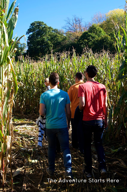 We even went on a corn maze while at the farm. Last week, Noah did a little kid "hay maze" and loved it! It was tall enough that kids couldn't see over but that adults could see over the hay bales to see which way to go. This corn maze was a totally different story. My dad ended up going ahead and the rest of us gave up and just went back to the entrance. We waited by the exit waiting for my dad and said, "What took you so long?" when he came out. I didn't think he'd actually believe us that we made it to the exit before he did, but apparently he did!