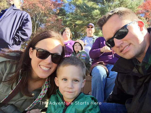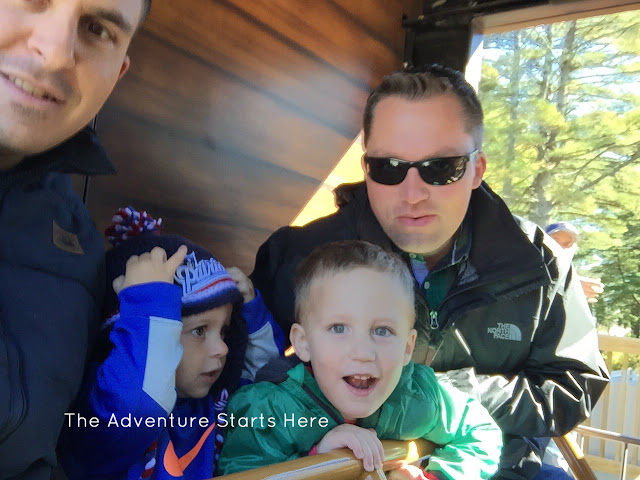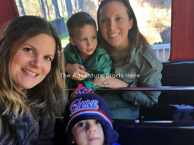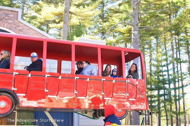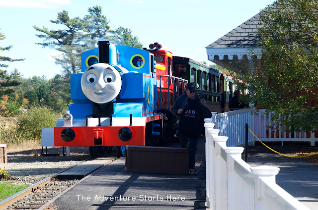 Originally, I thought this new Thomas Land was a separate park all on it's own.  But when we got there, we learned it was just a new section of the long standing Edaville.  To be honest, I had never heard of Edaville, but apparently it's pretty popular in Massachusetts.  They have held Thomas Day Outs there as well as the Polar Express at Christmas time.  The front part of the park leaves a little to be desired with 20-30 year old carnival type rides.  They do however have the Thomas train up front where you can take a 20 minute ride around the entire park.  The boys loved it and we could see the Christmas light displays (unlit) set up and ready for the holiday season... I'm sure it would be very cool to go for a ride at night :)