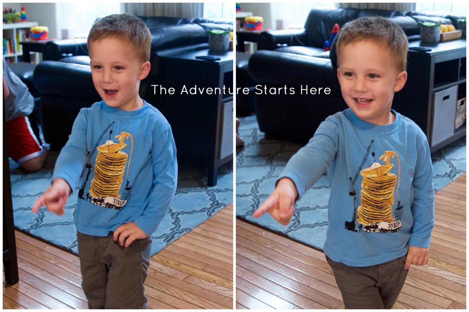 5. I love his pancake shirt! We had a Thomas themed birthday party last year for Cash when he turned 3. :)