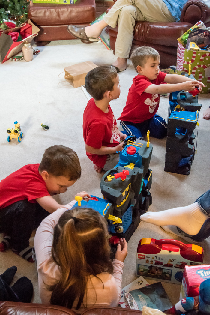 I grew up where each Christmas we would put on the Christmas Nativity Play. While our church would often put on a play with children as the "actors", I also remember doing it at home as a family activity. Sometimes it was just the 5 of us while some years we would invite neighbors and family friends over to participate with us. And even though Christmas has become very commercial over the years, this remains one of my favorite family traditions. As we got older, we stopped acting it out and instead just read the story from the Bible. But now that my older brother and I both have kids, we have started to carry on the tradition with the next generation. This was our third year acting out the Nativity play with Noah's cousins, and was probably our best so far.
