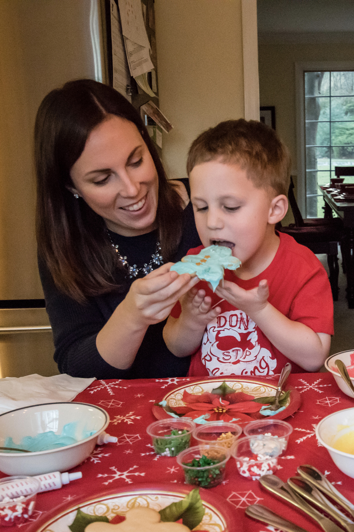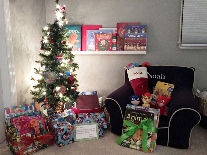 And once we were done with the Nativity Play, we sang some more of the upbeat Santa songs. We handed out bells, Santa hats, and reindeer ears and the kids put on a little show for us. It was hilarious to watch the kids dance around. Noah was very serious with his bell ringing and was tapping his foot to the beat.