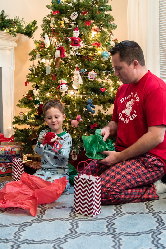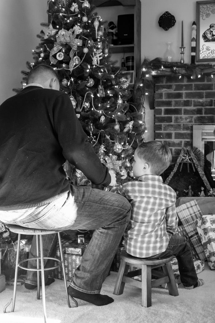 I love how this family tradition brings back so many childhood memories. To this day we use the crib that I used for my baby dolls as a child. This year, we borrowed Noah's Cabbage Patch doll to be Baby Jesus, but we still wrapped him up in my baby blanket.