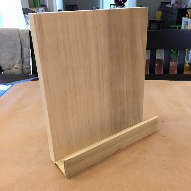 First off, helping her cook at home more. I wanted to compile all of her recipes in one place and make it easy for her to add any new recipes she finds. Originally I thought I'd make her a recipe binder filled with printouts of my favorite recipes. But then I realized that everyone has their own preference on how to organize their recipes and I remembered that my mom has switched over to the electronic method. My mom uses her iPad for everything, even when following a recipe. So I decided to make her a stand for her iPad when she uses it in the kitchen. I am by no means handy, but after searching for some designs on Pinterest, I came up with a plan to make my own. Since I definitely don't own a saw or have the skill set, I relied on the experts and had all my wood precut. Then I just had to do some sanding and glue the pieces together. While I didn't think it was a super important step, let me warn you that a clamp is in fact crucial for this project ;) After I was confident that the stand wasn't going to fall apart, I stained it and voila, my mom now has a place to put her iPad when making dinner :)