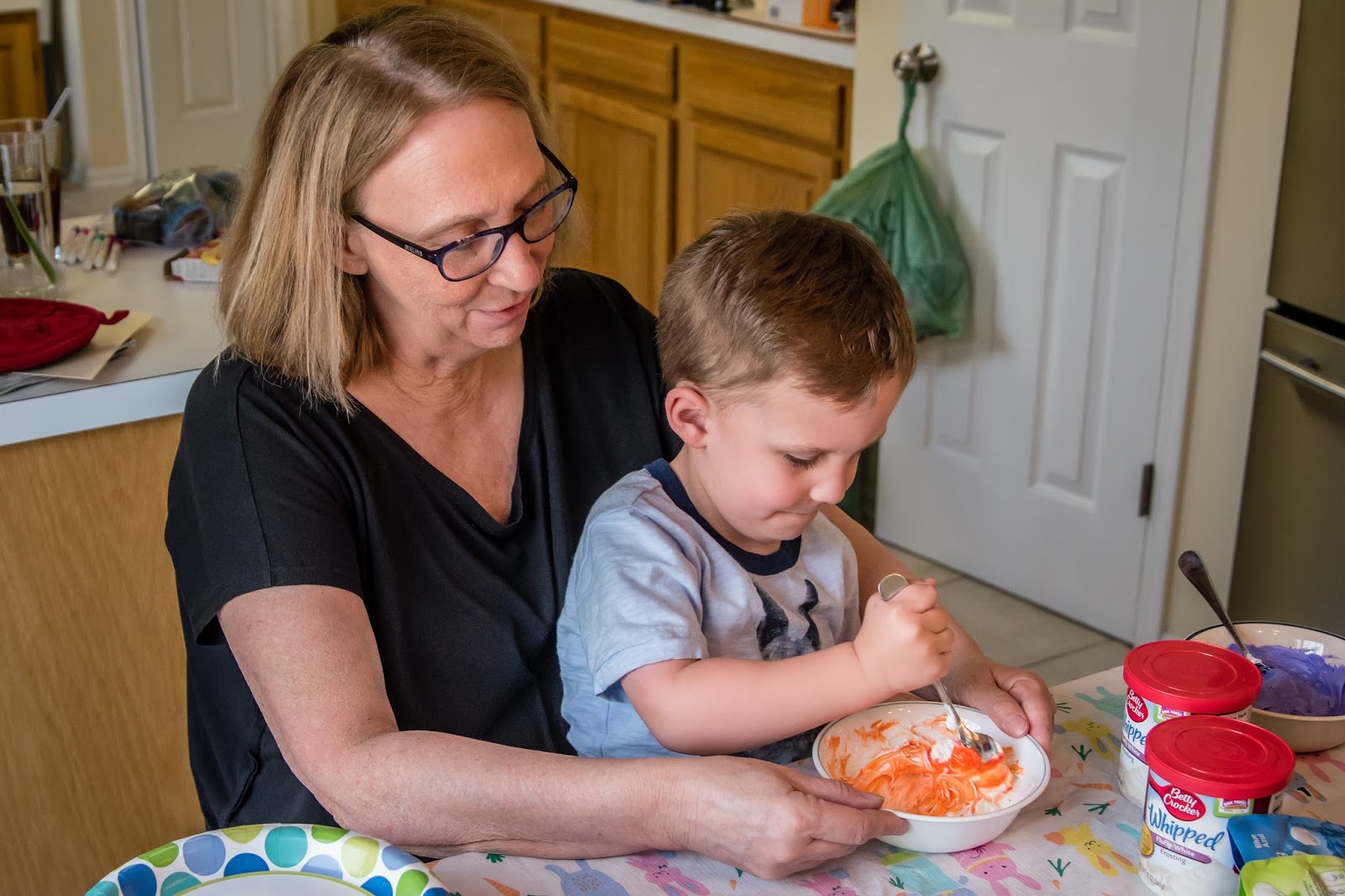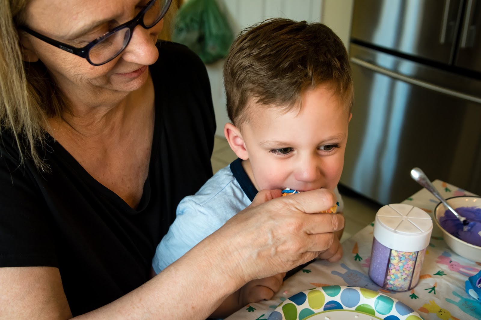 Once you feel confident that your kids are safe in the kitchen, let them help. In addition to helping me bake, I like to give Noah the independence to go grab a snack on his own. I do this by having a step stool in the kitchen and by keeping mommy approved snacks on the lower shelves. This way, I don't have to run to the kitchen every time he wants an applesauce pouch or string cheese. And as he gets older I plan to teach him to help in even more ways... putting his plates in the dishwasher, emptying the dishwasher, and even wiping up his own messes.