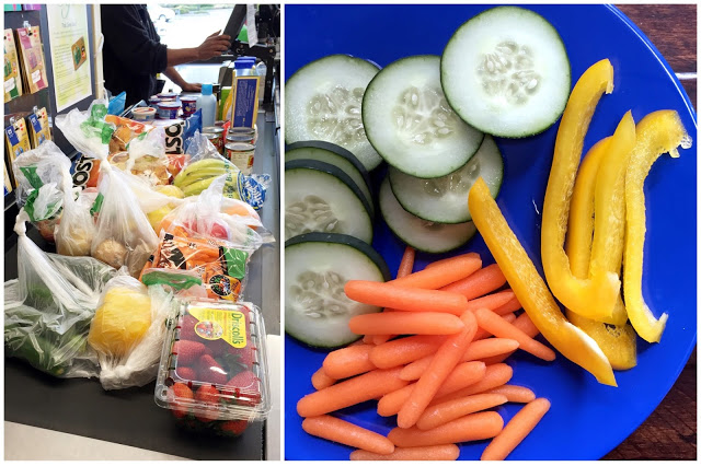 Maybe it has to do with the warmer weather, or maybe because we just splurged while on vacation, but I'm in the mood to start eating healthier. After being away for almost a week, I had to do a pretty big grocery run. I decided to fill my cart with lots of fruits and veggies in hopes to snack better throughout the day. I've been making plates of cut up fruits and veggies for Noah and me to share and so far it's working... Noah's eating better too :)