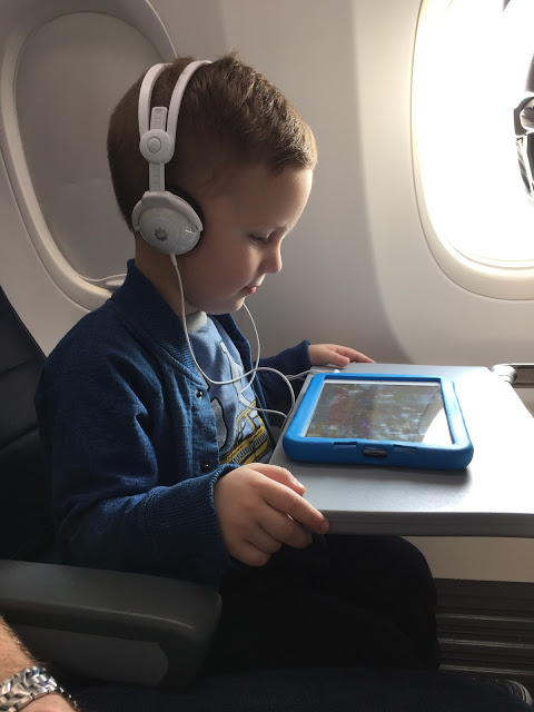 Not only do I pack entertainment for travel days, but I bring a few extra items to entertain Noah once we are there. I know there will be lots of downtime in restaurants and back at the hotel. The iPad and Transformers were still well loved, but I also packed a few "new items" that he didn't get to see on the plane. For the hotel, I brought this mini box of puzzles to keep him entertained while Chris and I got ready. I also brought a few extra sticker books (animals, dinosaurs, space, diggers) for him to do during dinners out. Noah is obsessed with these and they are real life savers at restaurants now!