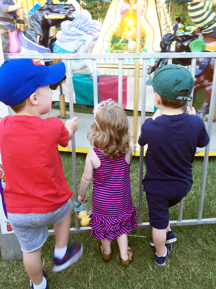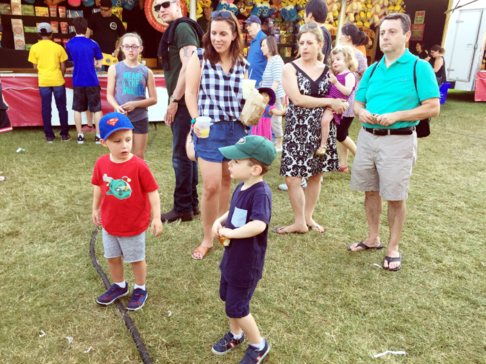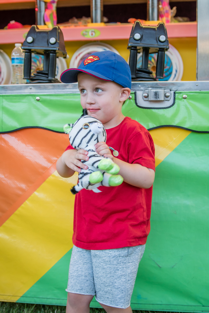 Is there anything better than a summer evening at your local carnival?  There's something about the kiddie rides, the cheap prizes you win at the games, and the greasy food that makes it the perfect family activity.  This was the second time going to our local "expo", and this year Noah specifically requested that we invite his best bud to come with us.  It was so much fun to watch Noah run around with his friends and have someone to go on the rides with.  We lucked out with a warm and sunny evening with low humidity (which is key to beautiful weather in New Jersey!).  We made the most of our two hours there by going on all the kiddie rides, winning a few prizes, and eating our weight in pretzels, zeppoles, and italian ice!
