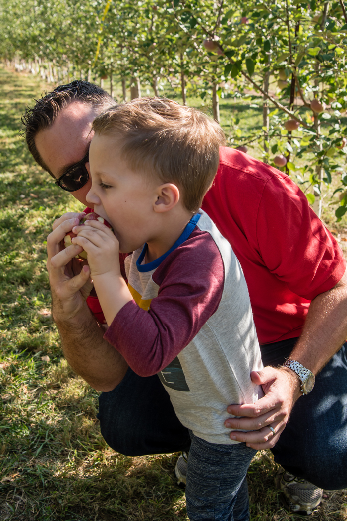 ReplyDeleteI just love the daddy son pics. They seem to have such a fun relationship in photos! And, I'm sure in real life too but the photos are what I know =) I bet biting into a nice fresh from the tree apple is a fun experience. Love the smiley too ha.