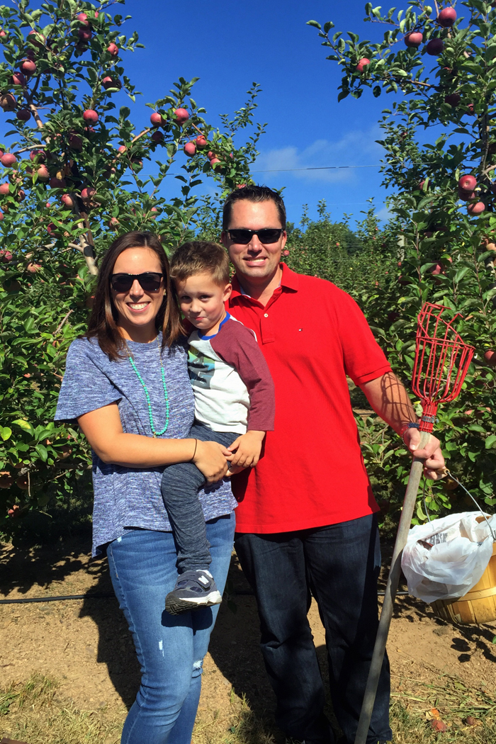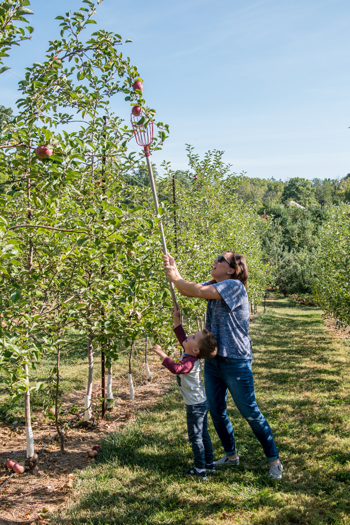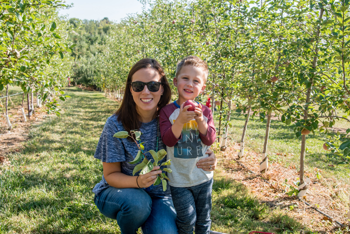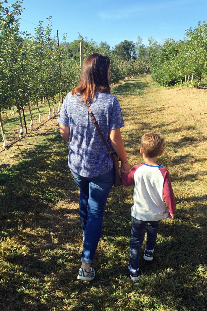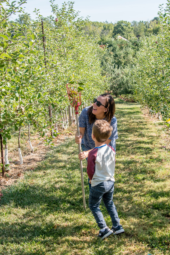 Pumpkin flavored everything is probably what comes to mind when you think Fall. But for me, September is about apples, pumpkins can wait for October! On Saturday, we headed to our local farm to go apple picking. While I'm not really a fan of apple pies (or any pie for that matter... it's the whole mushy fruit thing that bothers me), I really do like to eat apples and bake with them in other ways. And while it's fun to go pick tons of apples to bake with, our real reason for going apple picking is more for the experience. I love taking Noah each year and seeing how much he grows each year. Besides him looking bigger, I love that he's become more involved and more excited with the process every year.