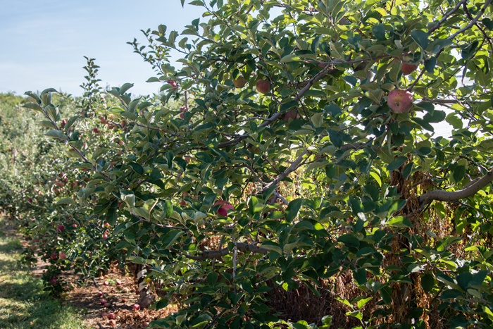 Past years, we've picked Honey Crisps since they are our favorite. But this year, we didn't check before going and were a little surprised when we found out the Honey Crisps weren't ready to be picked yet. Instead, they only had "Greening", which are meant for tarts and baking, and MacIntosh. While I grew up eating (and loving) MacIntosh apples, last year we picked a few and none of us really liked them. So right away, we were a little bummed that this trip might not be the best. And even though the trees were a little more bare than I had expected, there were enough for us to have a good time picking. And the best part... they tasted delicious this year! And while the photos make it seem like we picked baskets full of apples, we actually only picked about 10-15. A few were duds, we ate three on the spot, and we brought six home. At least I know we won't let any apples go to waste!