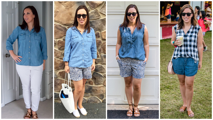 bottoms: white jeans | patterned shorts (Loft) | chambray shorts (Gap)