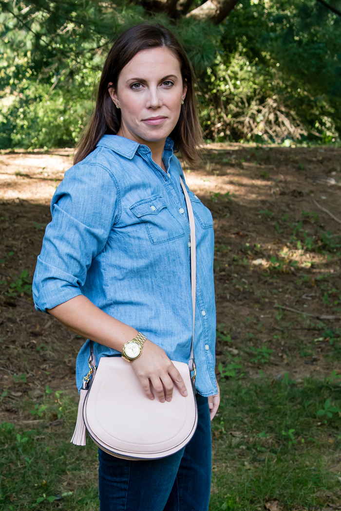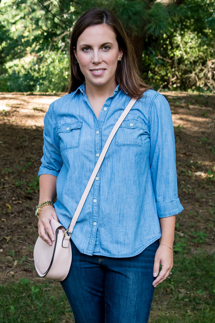This fall, I thought it would be fun to share some of my favorite seasonal trends. These are pieces that I will rely heavily on and plan to wear over and over. One of my favorite trends for fall, or rather all year round, is chambray. I love how depending on how you style it, it works for all seasons. And there are so many different ways you can wear it, the options really are endless! I know I will be wearing this chambray shirt a lot over the next few months!