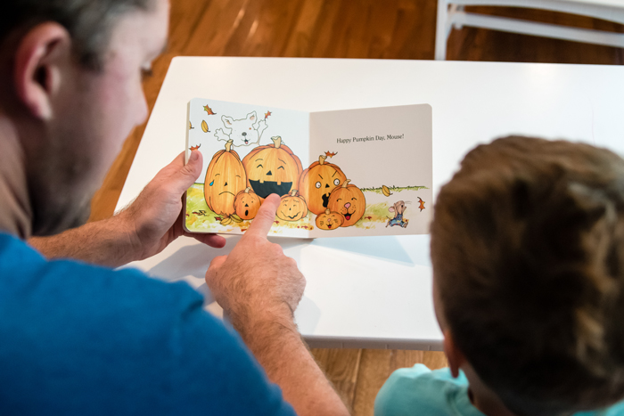 I was really excited to find out that this month's book was It's Pumpkin Day, Mouse!. It has been a favorite of ours to read each fall since Noah was really little. I love the simplicity of the book, but that the photos give you the opportunity to discuss different emotions and facial expressions. I was really excited to bring this book back out for the next several weeks.