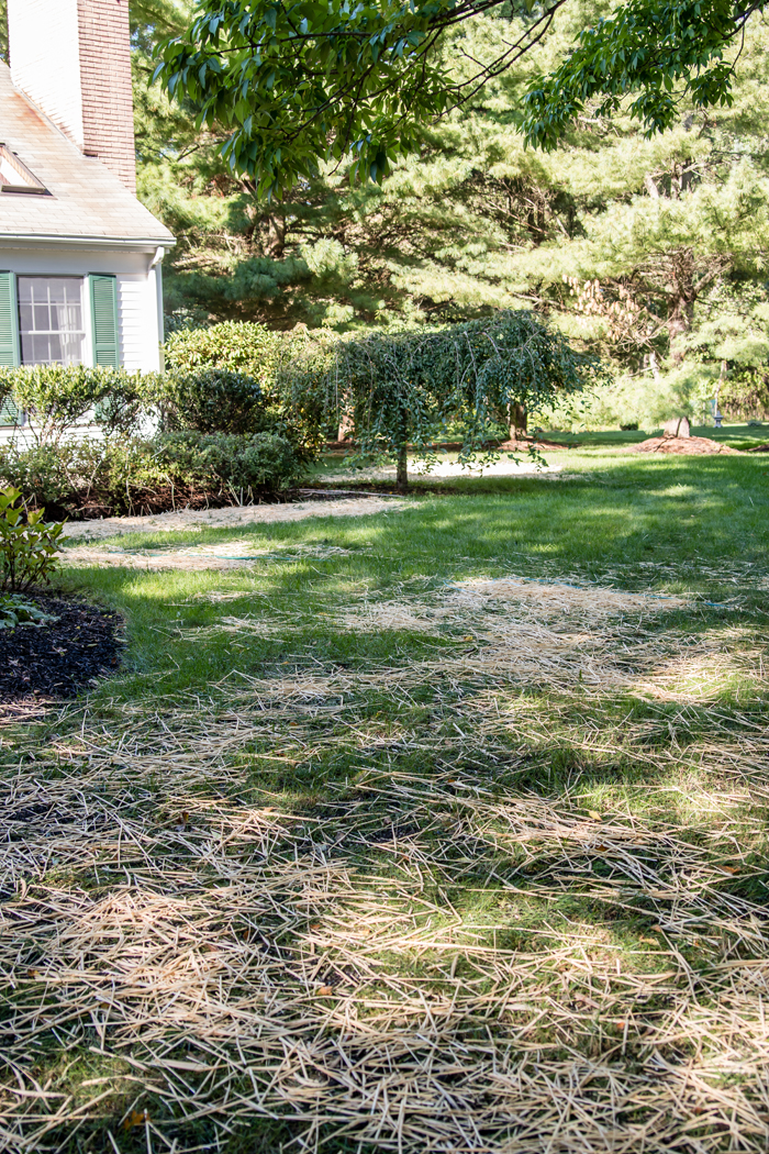 I contemplated getting some bales of hay for the porch too, but decided we had enough hay covering our front lawn! My dad, aka our gardener, is trying to grow grass in the numerous patches we have in our front and back yard. The hay is supposed to help the seed stay put, keep moisture in, and keep the turkeys (and other animals) from eating it before it takes. We have about another week left with the hay and I'm looking forward to having my beautiful lawn back! Now you know why my outfit photos will be shot inside for the time being ;)