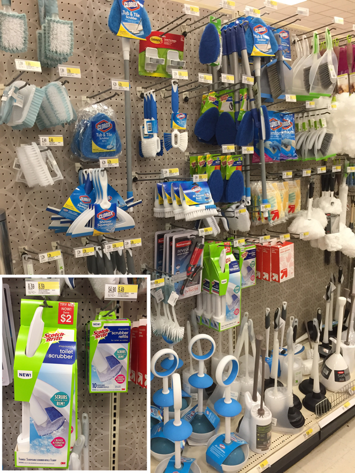 I found the Scotch-Brite® Disposable Toilet Scrubber and Scotch-Brite® Disposable Toilet Scrubber Refills in the cleaning aisle at Target. At first I looked in the aisle where the toilet liquid cleaners are located, but they ended up being in the aisle with the toilet cleaning supplies and sponges. Once I found them, it made total sense, but I figured I would let you know in case you do the same thing!