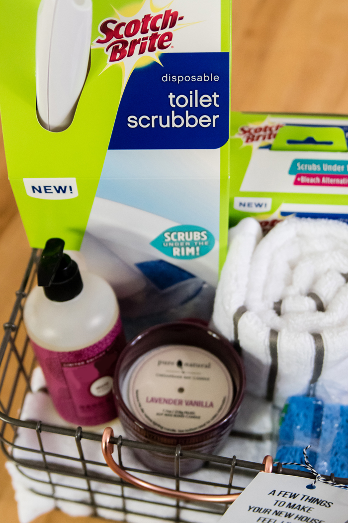 I don't know about you, but no matter how many lists I made of things we needed for the new house, I always forgot something, and cleaning supplies were usually it! While the house we bought was left in really good shape, one of the areas we were adamant about re-cleaning were the toilets. My husband even went as far as replacing all the toilet seats. But since I wasn't about to gift a toilet seat, I went for the next best thing... a disposable toilet scrubber. While cleaning toilets is probably my least favorite chore, I've been a long time fan of the disposable toilet scrubber... for obvious reasons. The Scotch-Brite® Disposable Toilet Scrubber makes this usually dreaded chore more bearable, and definitely less messy! Not only do I just throw out the scrubber part when I'm done, but I don't even have to use an extra liquid toilet cleaner, since it has a built-in bleach alternative cleaner with pumice that scrubs away rust & hard water stains. And while gifting a toilet scrubber might not seem like the most obvious choice, I think the best gifts are things that we love so much that we want to pass on to everyone we know! So if I can make cleaning toilets even just a little bit better, than I feel like a good friend!