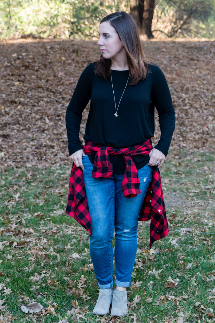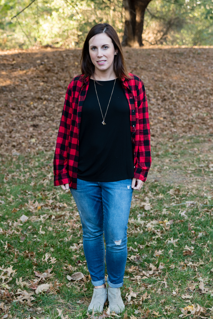 I have multiple plaid shirts (and scarves). But for today's post, I thought it would be fun to style my newest plaid shirt in a variety of ways. So even if you only own one or two plaid shirts, you can still come up with a variety of outfits for all different occasions! I'm actually really excited to see what Beth, Whitney, and Becky came up with!