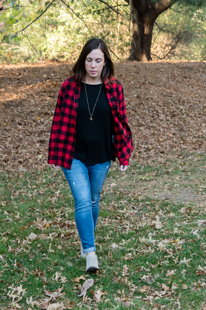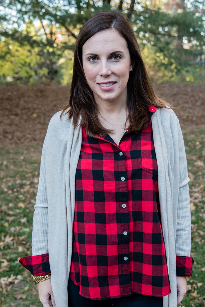 Every Fall, there are certain pieces in my closet that I tend to wear over and over. I tend to wear a variety of classic and trendy items. So far I've shared my love for the chambray shirt, utility vest, and my favorite Fall shoes. Today, I'm teaming up with some of my favorite blogging friends again to share another one of my most favorite fall classics... plaid! I am a huge fan of plaid button down shirts and can often be found wearing a plaid scarf! But I'm not the only lover of plaid, Beth at Our Pretty Little Girls, Whitney at Work It Mommy, and Becky at BYBMG are also sharing their favorite ways to wear plaid today!