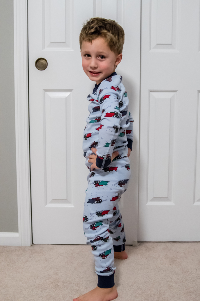 The first pair I got him were these flannel pajamas from Pottery Barn Kids.  He had a similar version that he wore the last two years, but they were finally too short for him. So we bought the next size up and they are still one of my favorite pairs, even if I do have to roll the pant legs this year.
