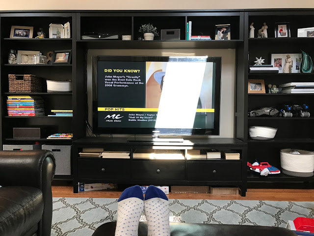 Dear sun glare from our sky lights, you make watching TV during the day really difficult! When Noah's at school, I like to catch up on some of my TV shows. But the light coming in from our living room skylights makes half the TV screen unwatchable! Chris joked the other day that if we ever won the lottery that we would buy remote controlled blinds for the skylights. Way to dream big huh???