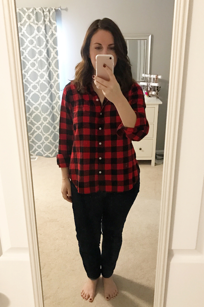 After Noah had school, lunch bunch, and art enrichment, we went to do some outlet shopping with my mom.  Back in the fall I shared three ways to style this red gingham shirt.