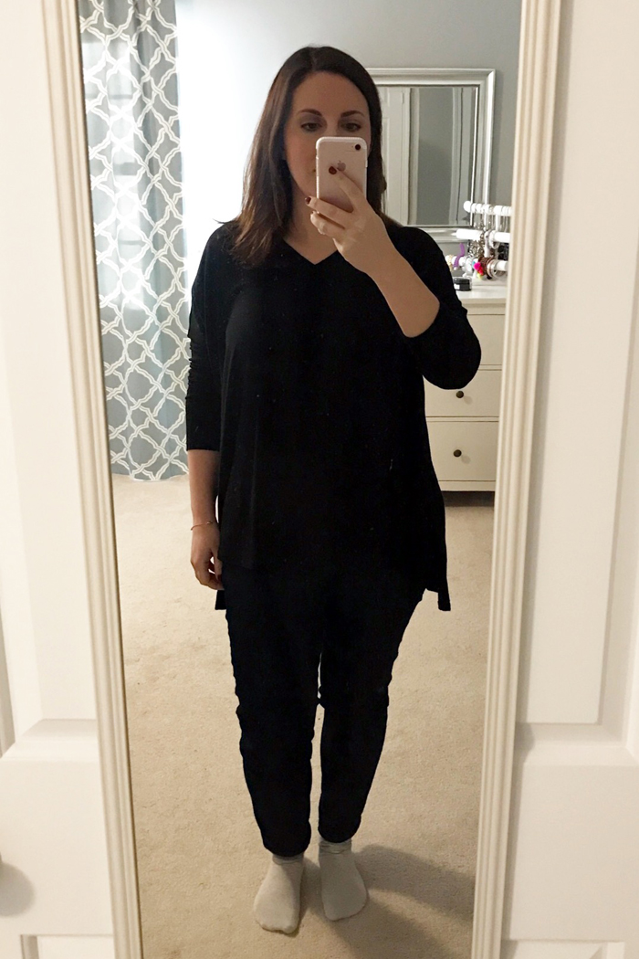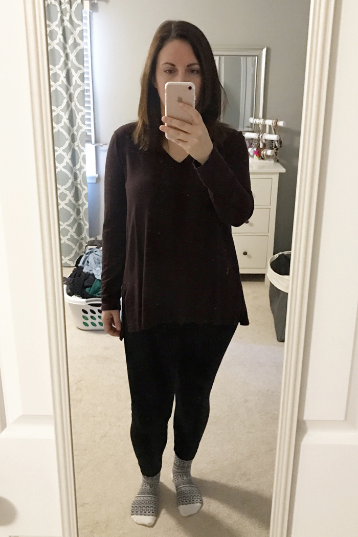 Noah was gone the whole morning at school.  Since I was spending the day working on my computer and doing tons of laundry (which you see behind me), I decided to stay comfortable with a tunic and leggings.